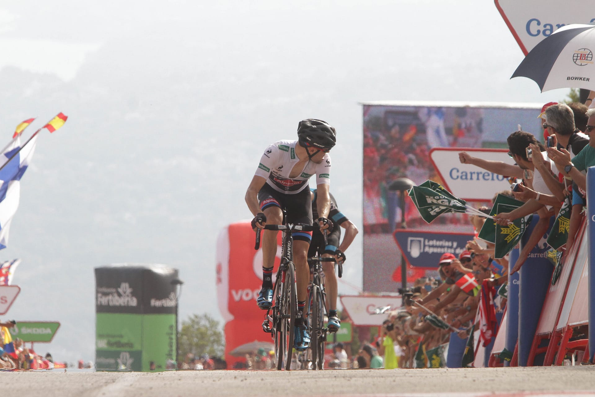 Het was zogenaamde ‘poetry in motion’. De renners leken soms vooruit te kruipen als slakken tegen de steile muur. Met nog 500 meter te gaan zitten de drie giganten bij elkaar. Als Froome attaqueert, laat Dumoulin hem uitrazen. De raket van Rodriguez raakt langzaam de brandstof kwijt. Het is bijna ongelooflijk om te zien dat met slechts 150 meter te gaan Froome voor ligt op de rest, maar dan stil lijkt te staan.