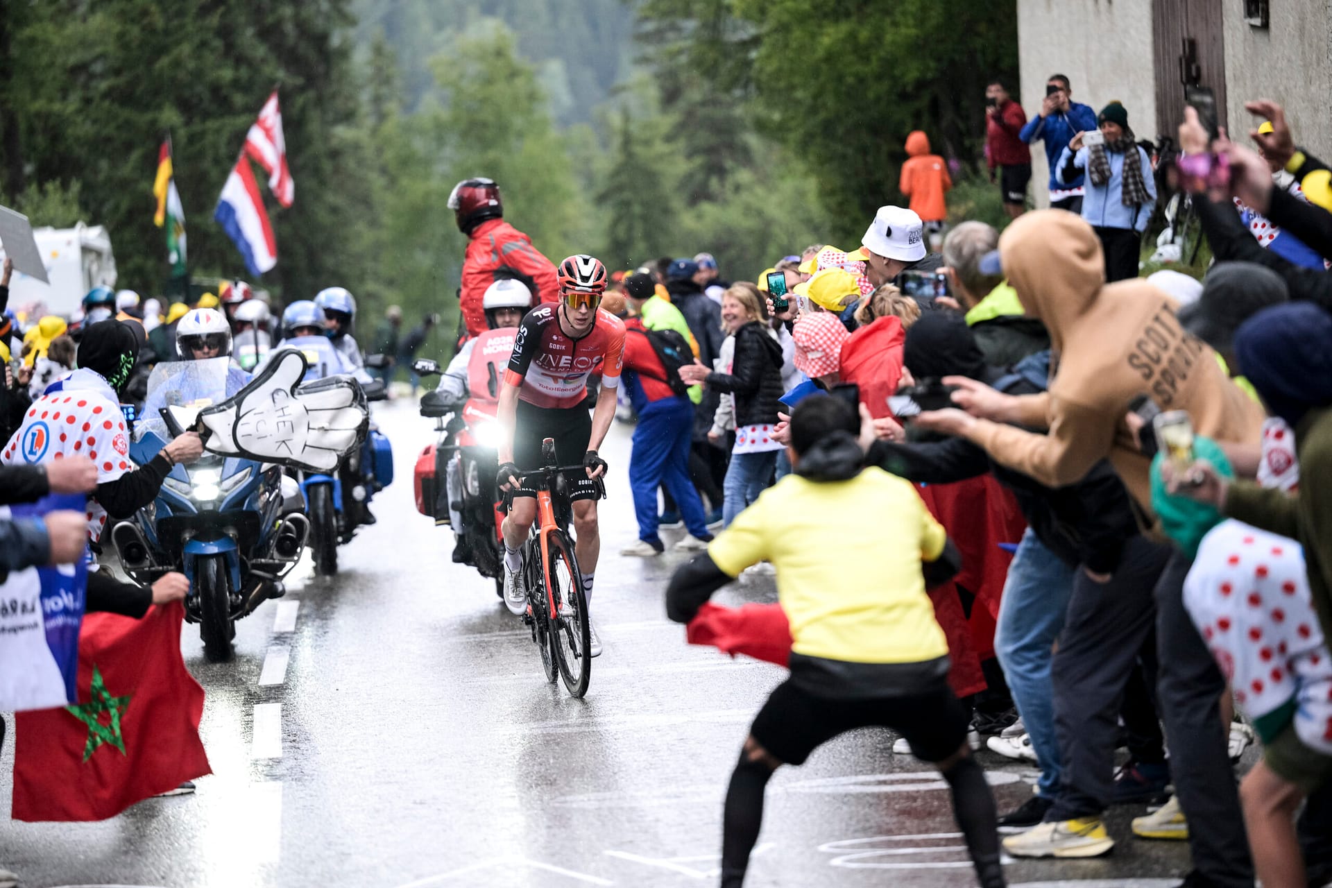 Op La Plagne kwam de bloem, in de regen, weer tot bloei. Vanuit de schaduw in de spotlight. En zo gaf hij het boeket aan Nederlandse tourwinnaars weer wat extra kleur.
