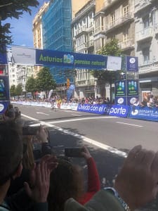 Een zondag eind april. Die dag eindigt de Vuelta a Asturias. Een regionale etappekoers.