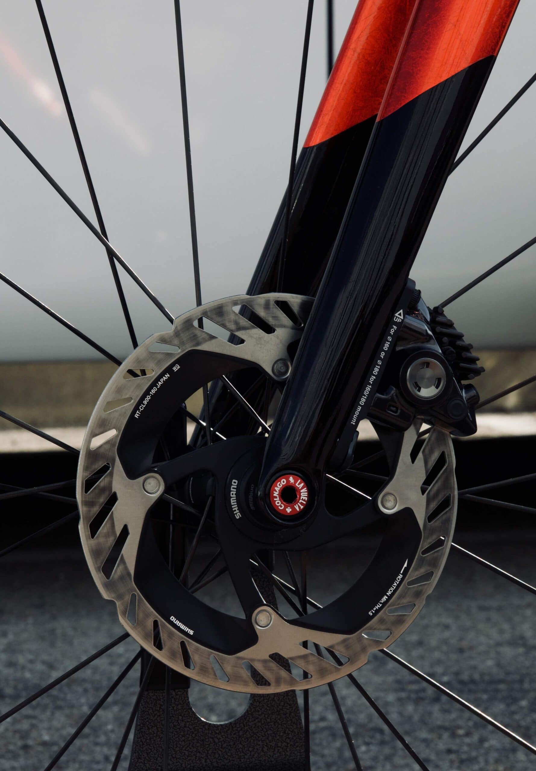 De C68 Rossa ademt symboliek. De vurige Candy Red-lak verwijst naar passie, strijdlust en doorzettingsvermogen: eigenschappen die renners nodig hebben in de Vuelta. Het stierenmotief verbindt Spanje met Turijn, beide trots op dit krachtige symbool. Details zoals een 3D-geprinte bidonhouder geïnspireerd op de Vuelta-trofee en een ruitpatroon afkomstig uit de barokke Galleria Grande in de Reggia di Venaria maken de fiets tot een kunstwerk.