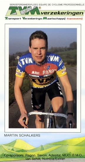 ‘De wát?’ Telkens als Martin Schalkers vertelt dat hij gedurende vijf jaren van zijn leven beroepsrenner is geweest, krijgt de geboren Katwijker precies dezelfde vragen voorgelegd. Of hij de Tour heeft gereden, is standaard de eerste. Een volmondig ‘ja’ kan Schalkers antwoorden. In 1990 rijdt hij namens TVM zijn enige Franse ronde. Aan de zijde van kopmannen Phil Anderson en Jesper Skibby haalt de Nederlander Parijs als 128ste.