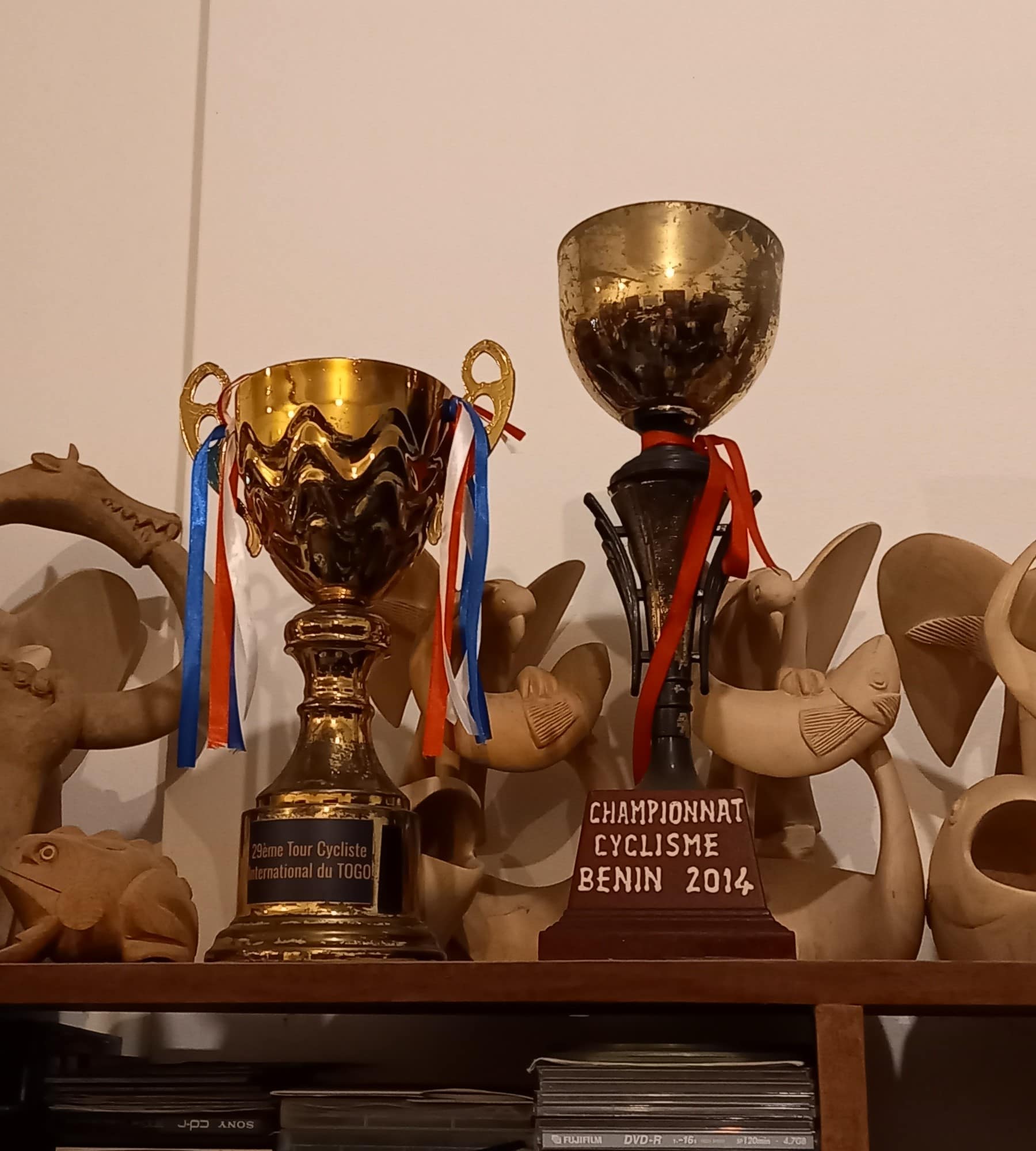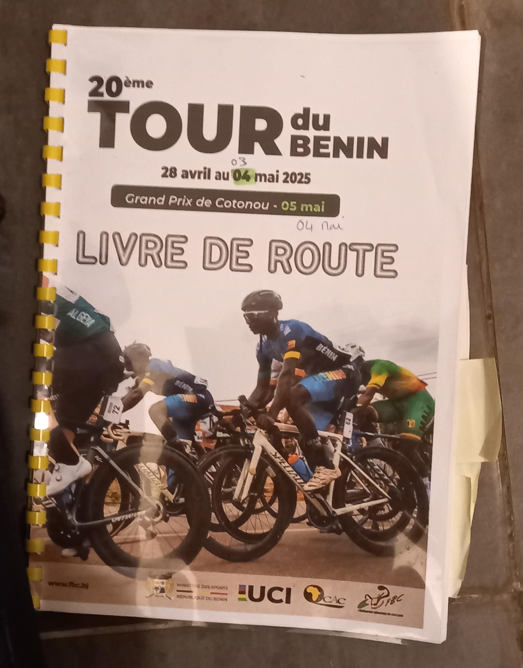 Ook heeft de Beninse wielerbond meer dan twintig fietsen gekocht. Een dag na onze kennismaking staat een fiets voor me klaar. Als ik me omkleed in het huis, staat de hele kamer vol met wielerprullaria: home trainers, wielen, gereedschap, bekers. Ik zie ook het draft routeboek voor dit jaar.