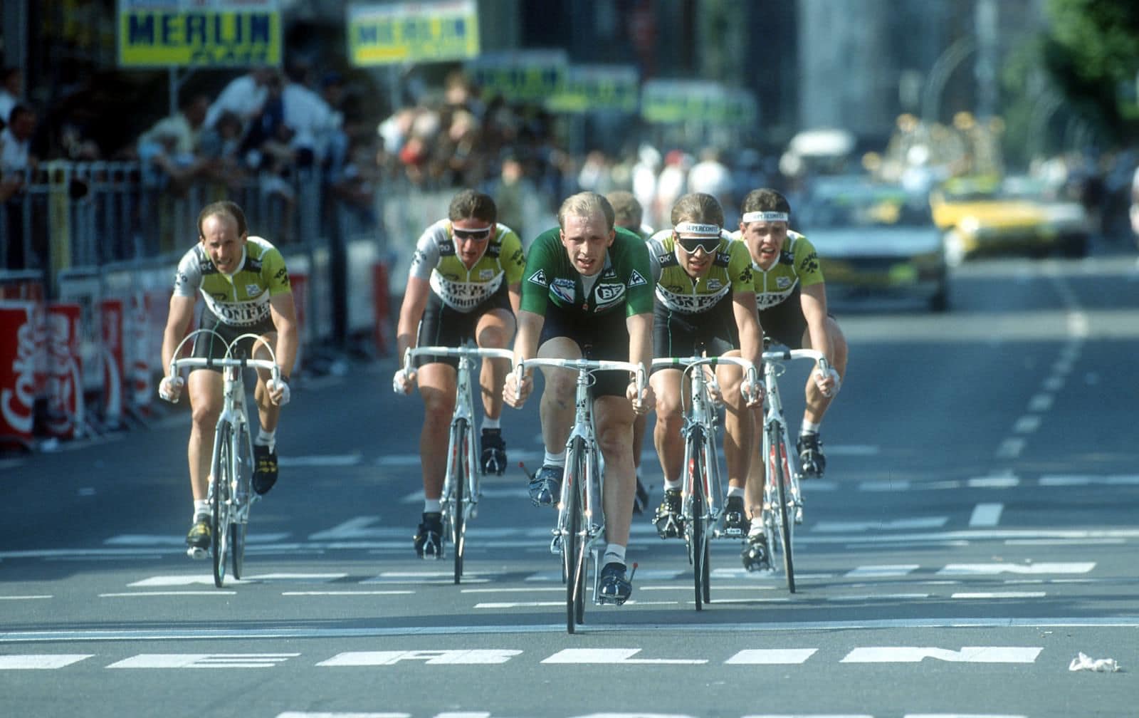 Rolf Gölz, Luc Roosen, Ludo Peeters, Jean-Paul van Poppel, Jelle Nijdam, Gerrit Solleveld, Maarten Ducrot, Gert Jakobs, Nico Verhoeven — in die volgorde vertrokken wij voor de ploegentijdrit door West-Berlijn.