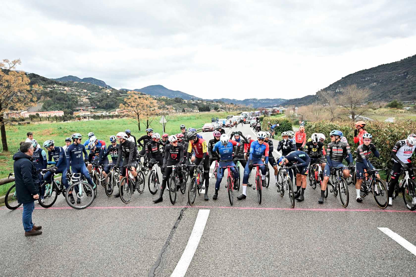 In de laatste tien kilometer schoven twee blokken naar voren: INEOS Grenadiers aan de ene kant van de weg, Visma | Lease a Bike aan de andere. Het was INEOS dat de finale naar zich toe trok.