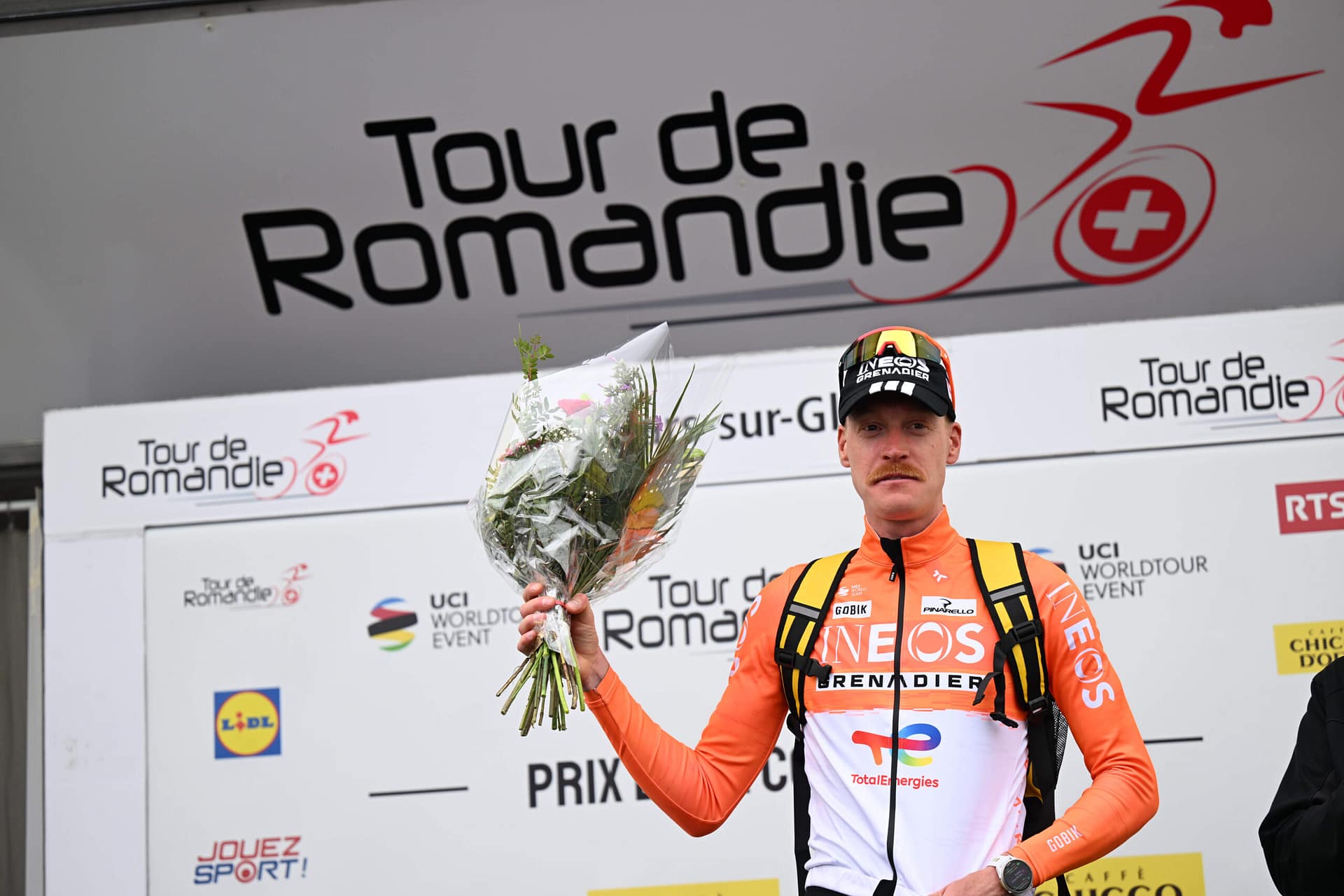 De lucht boven Villars-sur-Glâne trekt langzaam dicht als Dorian Godon over de streep komt. 3:35.12 op de klok. De 29-jarige Fransman van Ineos Grenadiers heeft zojuist 3,2 kilometer afgelegd met een intensiteit die hem, zoals hij zelf later zegt, op 200 meter van de finish ‘bijna blind maakte’. Hij is zo snel als een raket en uiteindelijk is het genoeg voor de dagzege, de eerste leiderstrui van de 79ste Tour de Romandie. Bovenal is het ook zijn vierde overwinning van het seizoen. Godon is on fire.