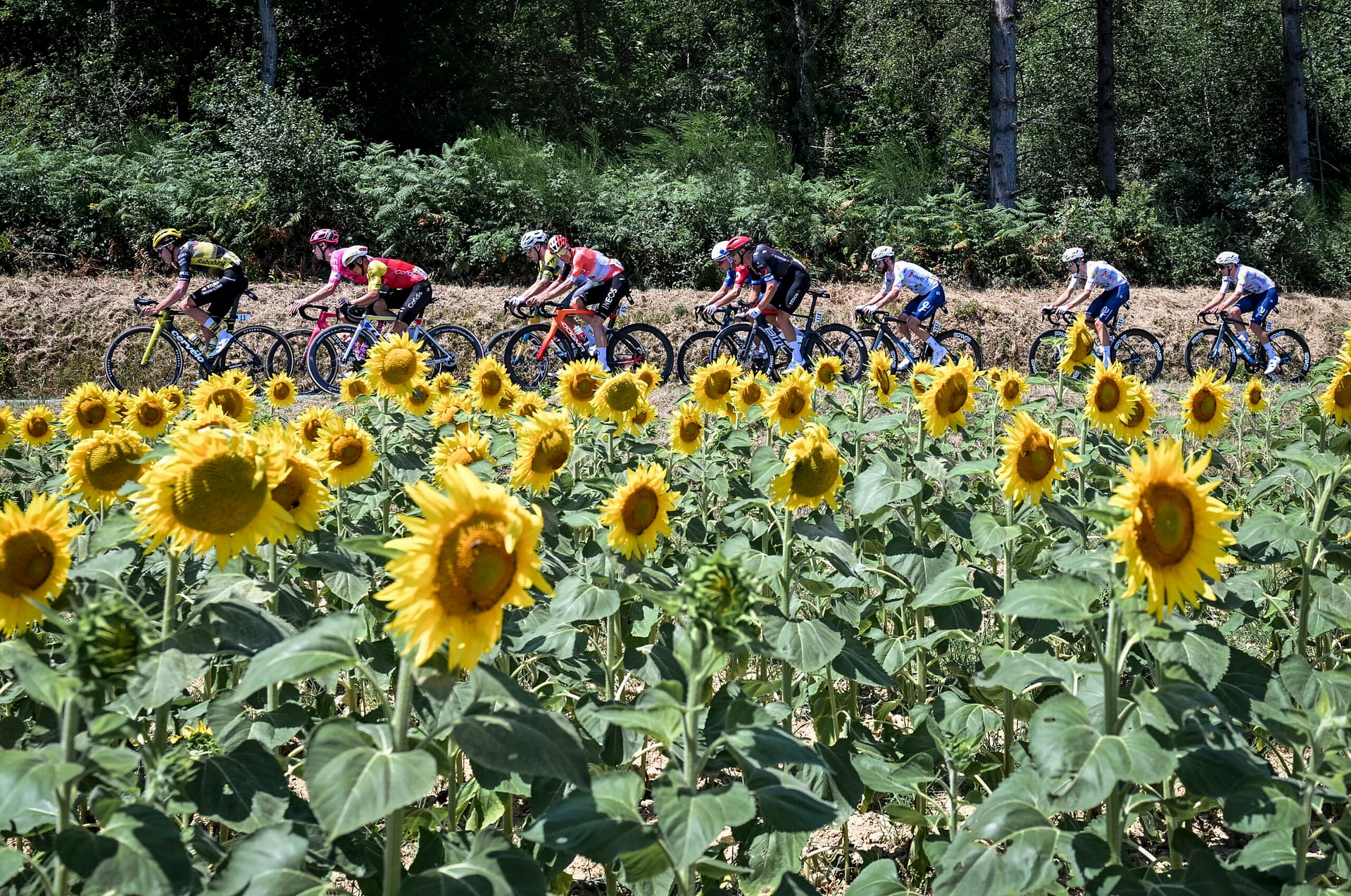 Foto A.S.O./Billy CeustersEen etappe met een lange aanloop naar de beklimmingen. Voer dus voor een groep en een ontsnapping. Tenminste, dat was in de tijd van eerder genoemde Riis en Leblanc zo. Groep vooruit, kwartiertje, dan peloton. Groep strijdt voor overwinning, peloton voor het klassement. In de huidige tijd is alles anders. Hoe de groep ontstaat, wie erin zit, de afstand erachter. Dit keer reed er zo’n grote groep weg, dat je het bijna een peloton kon noemen. 51 man onder wie Van Der Poel en Arensman. Laatstegenoemde was nadrukkelijk op zoek naar revanche voor zijn tweede plek een paar dagen terug. Maar al snel werd duidelijk dat ie dat op z’n buik kon schrijven.