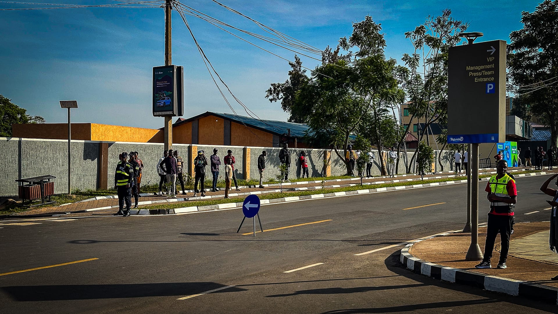 In het Kigali Convention Center is ruimte genoeg voor grote agrarische congressen, tech beurzen en meer. Er zijn zijn zalen ingeruimd voor bobo’s, regelaars, dopingcontrole en ook media. De accreditatie voor media, die is echter kilometers verderop. Als je ook een hesje nodig hebt? Die krijg je dan weer bij het congresgebouw. Bij het accreditatie centrum is het bordje voor de bus neergezet, maar lijkt de shuttle geen tijdsschema te hebben. De vele vrijwilligers ten spijt, wordt het toch een moto-taxi.