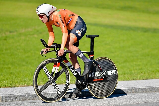 Zelfs de zwaarste bergetappe of de saaiste duurtraining kruipen gevoelsmatig sneller voorbij dan het anderhalve uur dat Ellen van Dijk doorbrengt op een stoeltje in Brugge. Een ‘hot seat’ is al verre van comfortabel, er voor langere tijd op moeten verblijven om af te wachten of een concurrente het parcours sneller zal afleggen, maakt het zitten een ware lijdensweg. Het is maandag 20 september 2021 en relatief nog vroeg in de middag als de Nederlandse specialiste in races tegen het uurwerk door een goed bedoelend lid van de organisatie van het wereldkampioenschap naar het stoeltje begeleid wordt. Een paar minuten eerder heeft Van Dijk in de 30,3 kilometer lange chronorace tussen Knokke-Heist en Brugge de snelste tijd tot dan toe op de klok gebracht. Dat de zesendertig minuten en vijf seconden, die ze nodig had voor die afstand, genoeg zijn om de regenboogtrui aan te mogen trekken, is op dat moment nog allerminst zeker. Na Van Dijk komen nog liefst dertig rensters over de finish. Voormalig wereldkampioene tegen het uurwerk Annemiek van Vleuten is bijvoorbeeld een van hen. Net als Marlen Reusser. De Zwitserse had anderhalve week eerder elf tellen minder dan Van Dijk nodig gehad op het Europees kampioenschap en daardoor de titel weggekaapt voor de neus van de Nederlandse. Die had de teleurstelling van die nederlaag twee dagen later knap omgezet in strijdlust en daadkracht. In de wegwedstrijd was ze in de finale bij alles en iedereen weggereden om solo over de meet te komen en zo de Europese titel op te strijken.