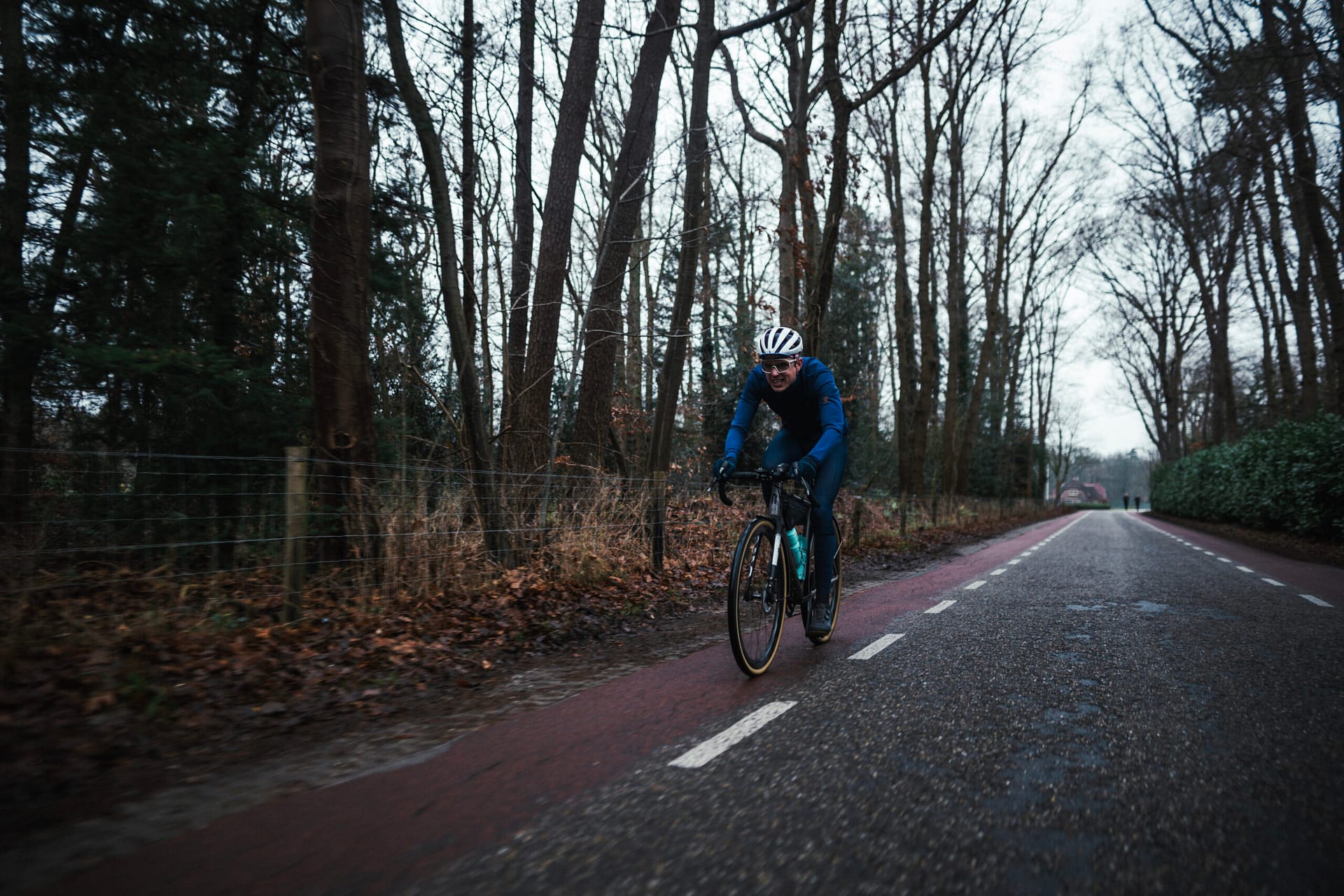 Zoals gezegd, het is koud en mistig, maar ik heb geluk. Mijn eerste route is maar 69 kilometer lang. Om 7:15 vertrekken vanaf een geheime locatie vlak bij Apeldoorn. Allemaal een andere kant op.