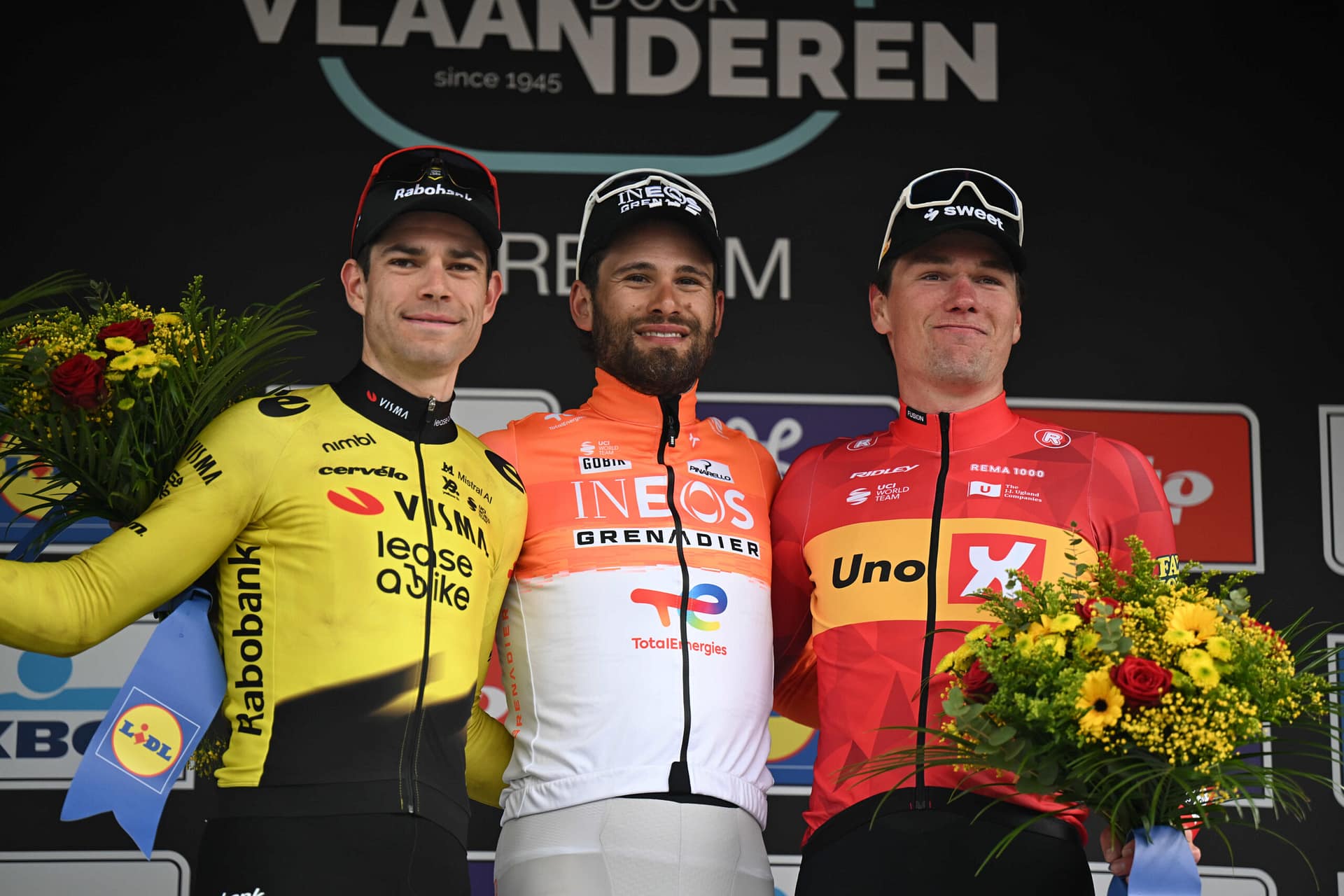 Op de rechte lijn naar Waregem, waar de schaduw van vorig jaar nog lang genoeg reikt om elke Vlaamse Wielerweek te kleuren, haalt Filippo Ganna een eenzame Wout van Aert terug in de allerlaatste vijftig meter. De Italiaan van INEOS Grenadiers, een tijdrijder met de motor van een TGV en het palmares om het te bewijzen, kroont zich tot winnaar van de 80ste editie van Dwars door Vlaanderen. Van Aert wordt tweede. Søren Wærenskjold maakt het podium compleet op één seconde.