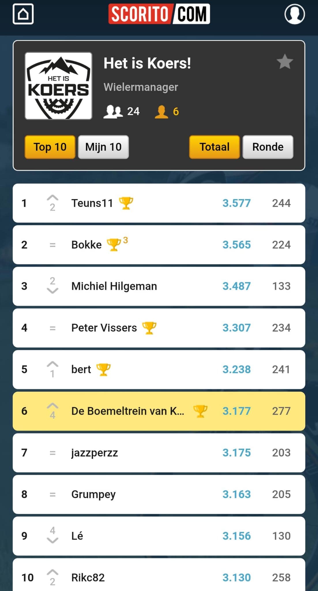 Een dergelijke triumviraat lijkt zich ook in de HiK-giropool af te tekenen. Na een dagenlange tweestrijd, sloot Teuns na drie dagzeges aan en vandaag ging hij zelfs over zijn twee naaste concurrenten heen. Kan de man in vorm de komende dagen verder weglopen? Of vormt hij een mooi mikpunt voor Bokke en Hilgeman.