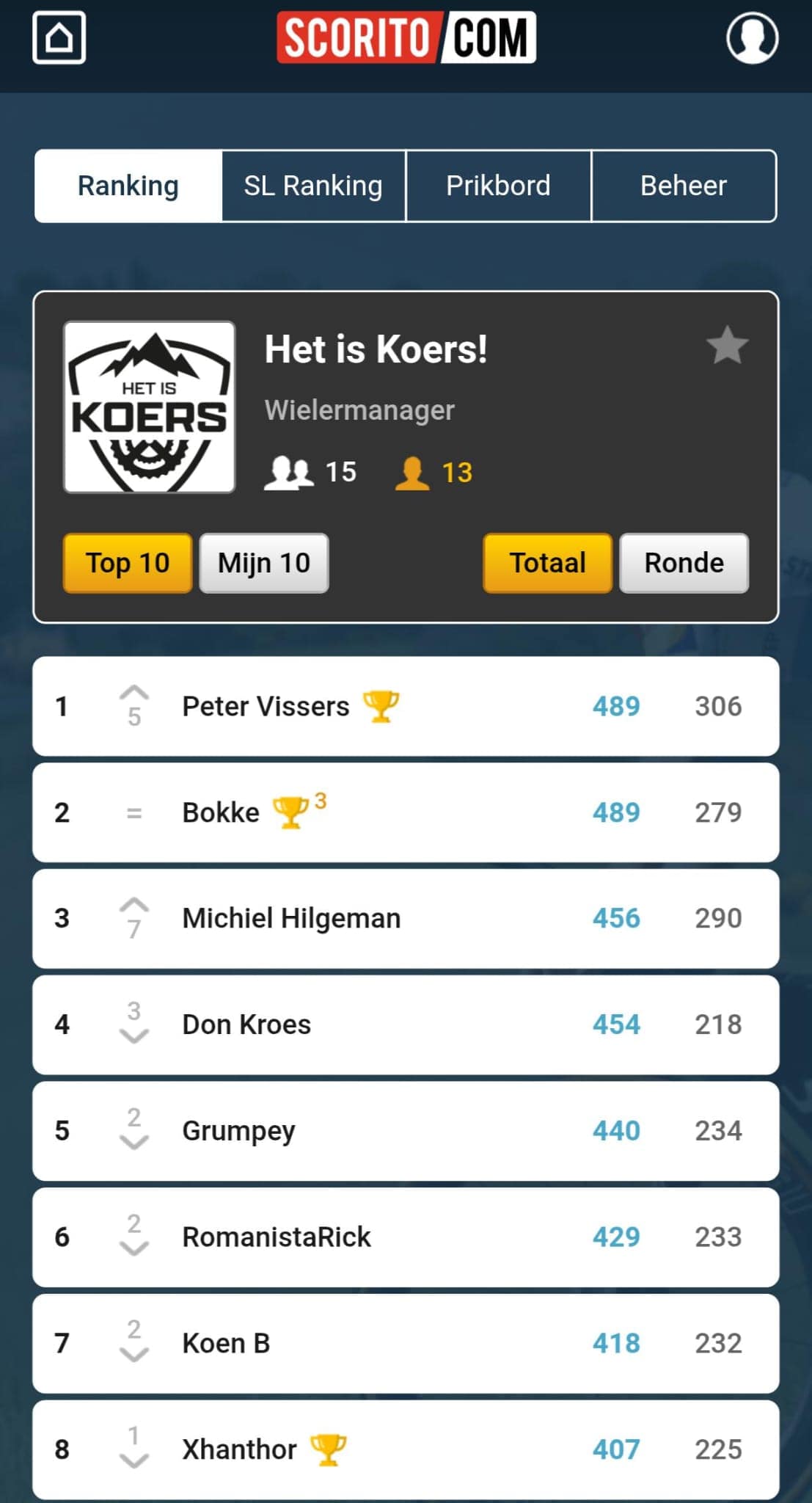 Michiel Hilgeman kende in de schaduw van onze nieuwe klassementsleider ook een uitstekende dag. Hij sprong van plek tien naar plek drie en is zo de stijger van de dag. Tussen Hilgeman en Vissers staat Bokke, die kortstondig virtueel in het roze reed, maar aan het einde van de dag toch weer terugzakte naar de plek waarop hij de dag begon: nummer twee.