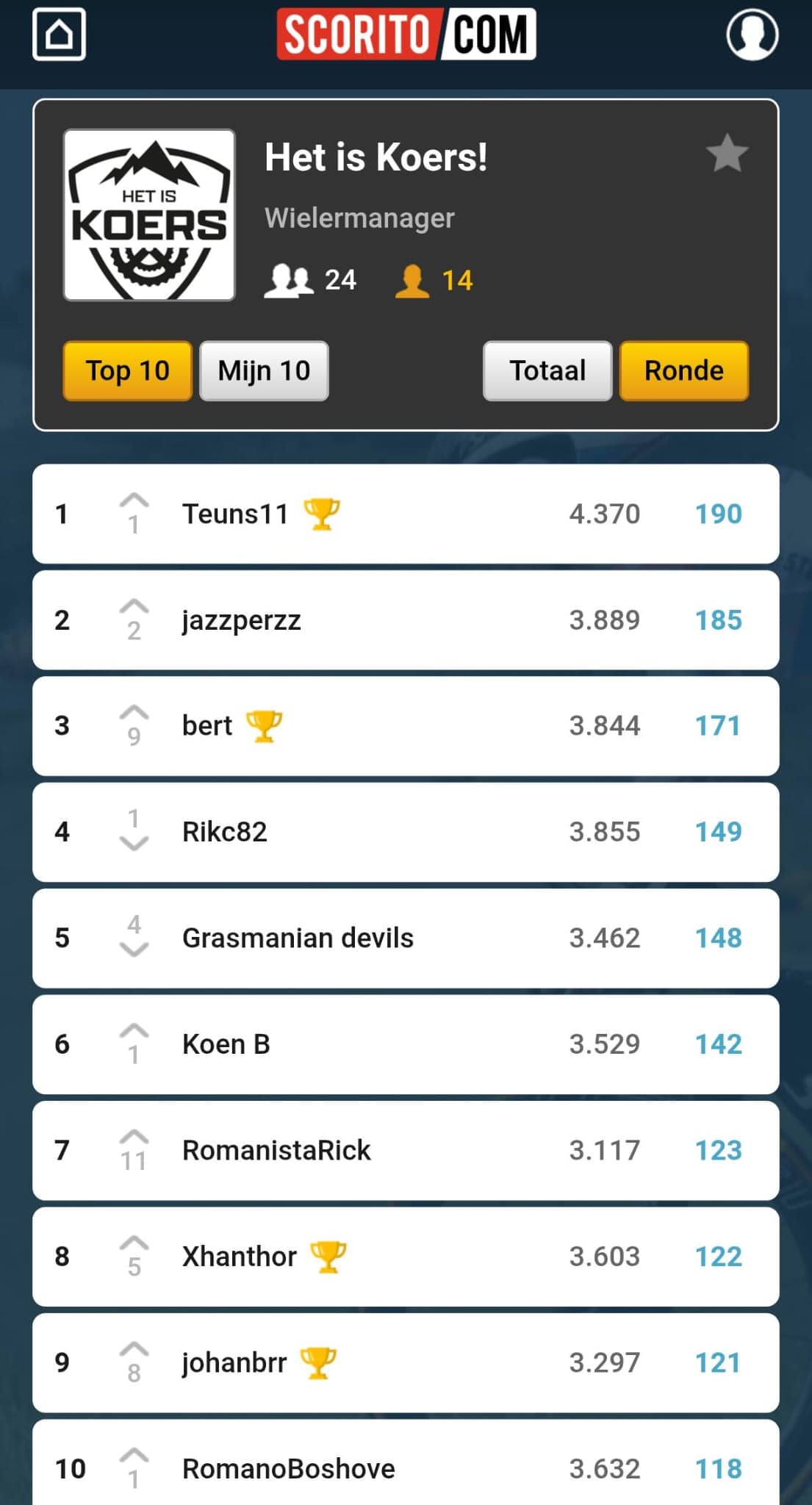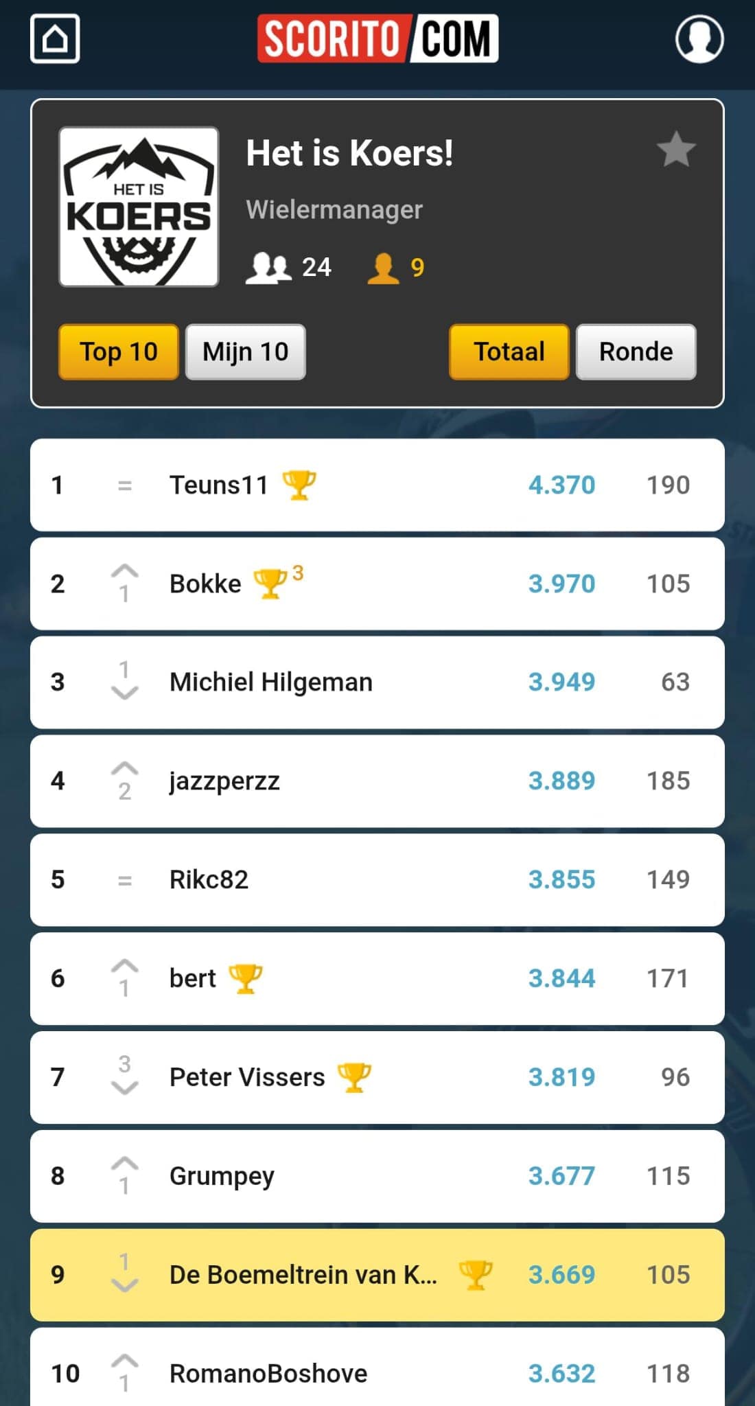 jazzperzz en bert konden vandaag goed meekomen met Teuns over de Finestre en mogen – met een mogelijk gunstige eindafrekening morgen – nog dromen van het podium. Op dit moment worden de tweede en derde plek nog ingenomen door de Siamese tweeling Bokke en Michiel Hilgeman, die maar weer eens stuivertje wisselde op deze een-na-laatste dag.