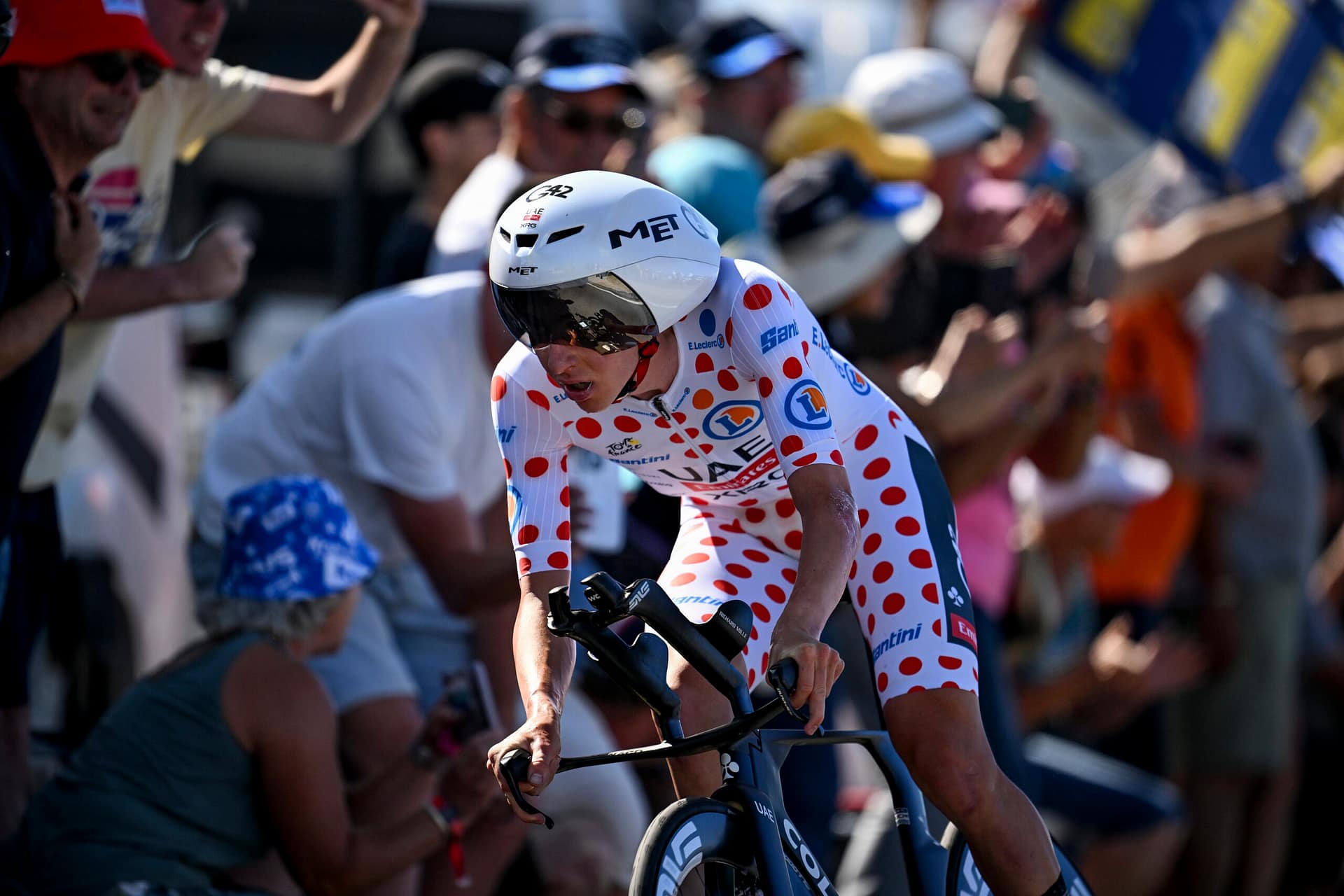 Het is de slechtste dag voor Vingegaard deze Tour tot nu toe. Hij wordt op meer dan een minuut gereden door Evenepoel (1’21). en moet ‘m ook voorlaten in het klassement. Ook de anderen komen er niet aan. Niemand komt eraan te pas. De Aerokogel van Schepdaal laat geen spaan heel van de concurrentie. Er is nog wel een verdienstelijke tijdrit van Kevin Vauquelin, die in de witte trui op 50 seonden binnen komt. Hij moet de witte trui aan Evenepoel laten, maar hij geeft wel een visitekaartje af.