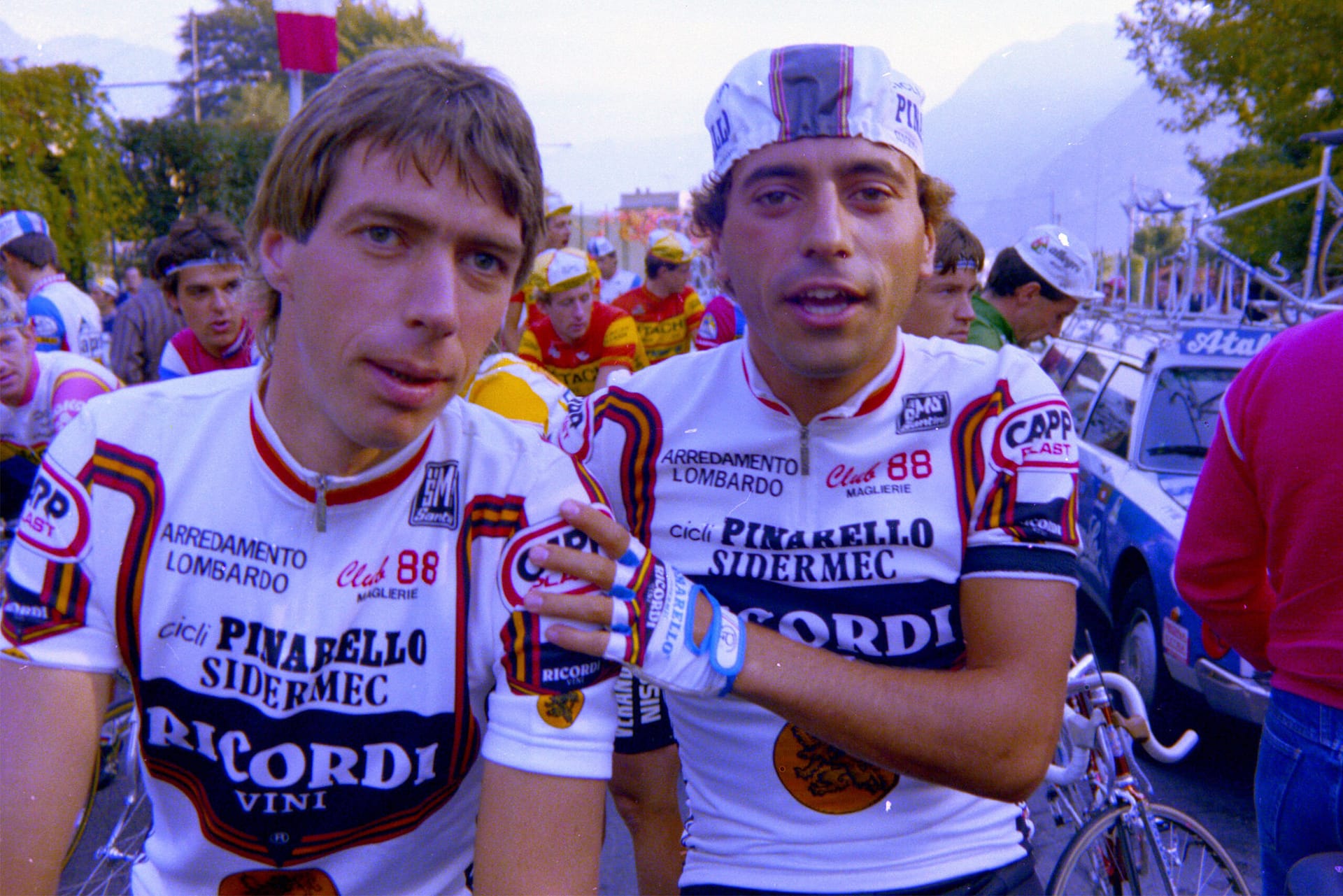 Eenmaal op bed kon ik niet slapen. Mijn hoofd zat nog te vol met de Tour de France, Derrick, de verminkte Johan van der Velde en de zwaar opgemaakte ogen van Madonna. Beneden werd er ruzie gemaakt. “Ik verdom het om elke keer naar dat stomme Cheers te gaan zitten kijken!” riep mijn tante. “Dan ga je toch lekker naar bed met je gezeur, stom mens” reageerde mijn oom; “Als je een aflevering mist, raak je het verhaal kwijt”. “Man, lul toch niet zo stom, er gebeurt nooit wat daar!” riep tante. Daarna op heel andere toon: “Ik wil met jou naar bed Bomtempi, sprintertje van me”. Het werd weer stil en even later stommelde tante giechelend de trap op. Mijn oom kwam haar achterna. “Cheers, mijn reet, kom hier!” riep hij erbij. Ook op de kamer van Gijs was het onrustig. Ik hoorde een hoop gebonk en Gijs die iets van “oh yeah, kom to Gijs beebe” riep. Rik had nergens last van en sliep. Ik irriteerde me aan zijn adem die hol in zijn gehemelte klonk. Hij zag er onnozel uit, zo met zijn mond half open. Pas tegen middernacht werd het rustig in huis en viel ik in slaap. Die nacht werd ik door Peter Post in mijn nekvel gegrepen en achter de kast geduwd. “Help effe mee”, riep hij tegen Gijs die uit het raam hing met een sigaret. Jan Raas bonkte met zijn vuisten op de muur en riep dat ik een klootzak was. De dame met de blote borsten en de zwoele blik probeerde ze tegen te houden en drukte me tegen haar warme lijf. Even later gleed Pelier als eerste over de finish. Ik lag naast Johan van der Velden in smalle richel tussen de kast en de muur. Een ravijn vol grote, vieze stofvlokken. Hij keek nog zieliger dan op de Raleigh-poster.