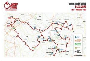 De 78ste editie van Kuurne-Brussel-Kuurne vindt plaats op zondag 1 maart 2026. Het peloton verzamelt zich niet in Kuurne, ondanks wat de naam suggereert, maar op het Guldensporenplein in Kortrijk, waar de koers tot minstens 2031 zal starten. Dat heeft alles te maken met euro’s. Kuurne is een kleine gemeente, Kortrijk heeft de centen. Dus is de start verplaatst naar Kortrijk. Daar wordt om 12:10 het startschot gelost voor deze editie van K-B-K. De verwachte finish is tussen 16:50 en 17:15 op de Brugesteenweg.