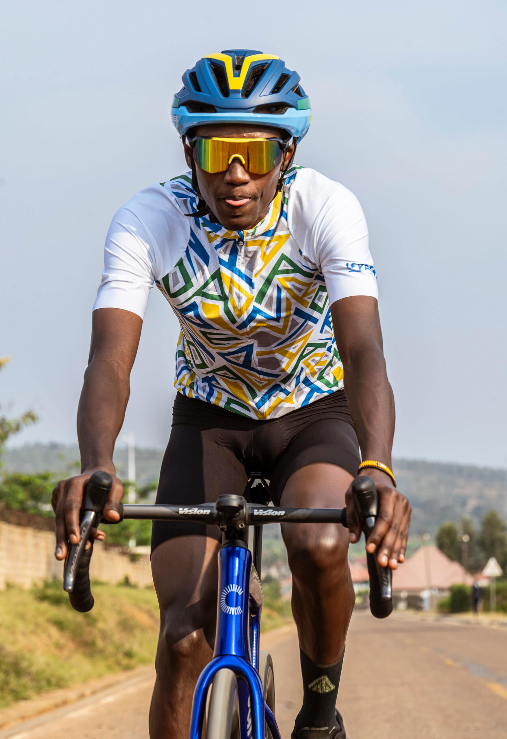 De nieuwe Le Patron wielerkleding voor Rwanda combineert stijl, kwaliteit en symboliek. Het witte shirt met blauw, geel en groen – de kleuren van de Rwandese vlag – bevat patronen opgebouwd uit de woorden Rwanda en Le Patron. Het ontwerp, ontwikkeld in samenwerking met Etxeondo, staat symbool voor verbondenheid en trots.