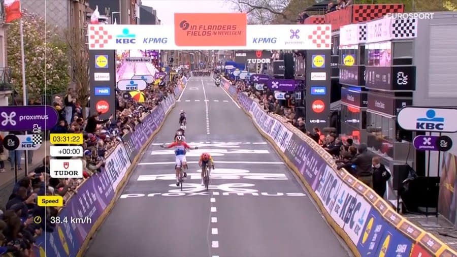 Lorena Wiebes wint In Flanders Fields voor de derde keer, maar moet in Wevelgem alles op alles zetten om Fleur Moors op een wiellengte af te houden na een ietwat te vroeg ingezette viering.