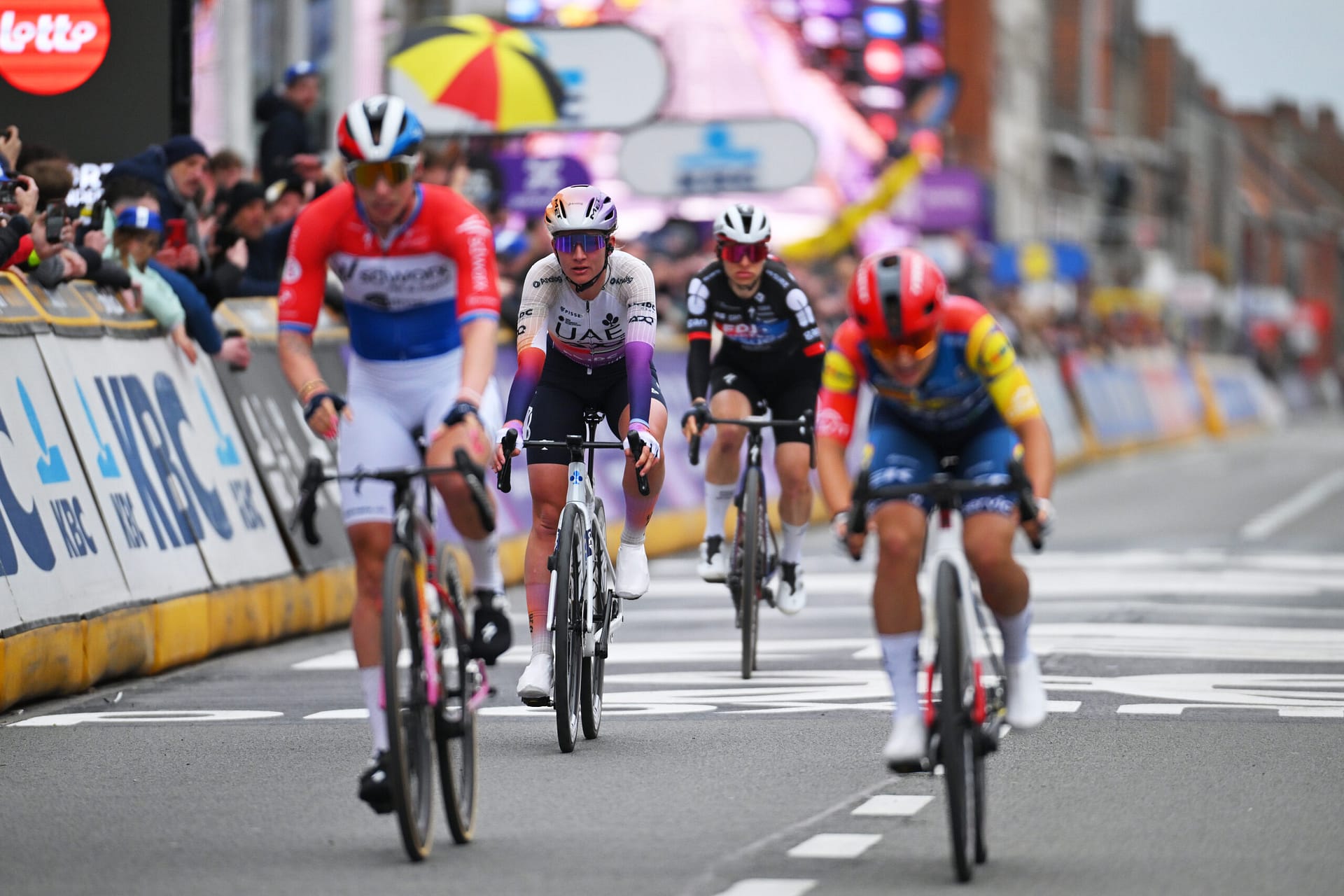Drie keer dezelfde koers winnen is zeldzaam genoeg om op te vallen. Drie keer dezelfde koers winnen terwijl de tweede plaats bij de laatste meters nog langs je heen dreigt te schieten, maakt het verhaal compleet anders. Wiebes had de snelheid, had de positie, had het vertrouwen om haar handen van het stuur te halen, en had vervolgens bijna het resultaat niet meer.