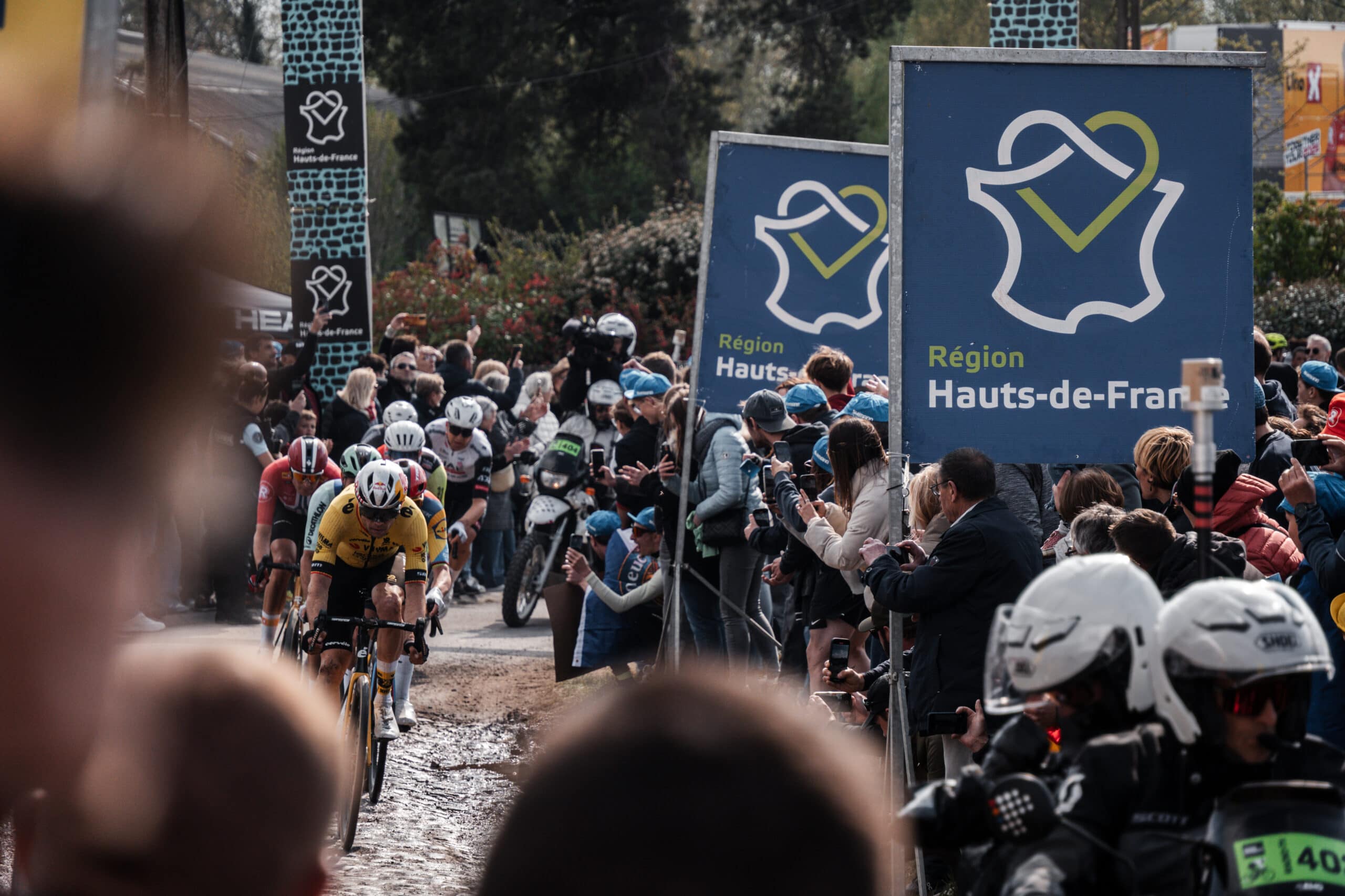 Al voor het Bos van Wallers werden wat speldenprikjes uitgedeeld, maar op de Trouee d’Arenberg ontspon zich de strijd. De eerste schifting was daar en laat het pech zijn of slechte benen: Van Aert en Ganna konden in de achtervolging.