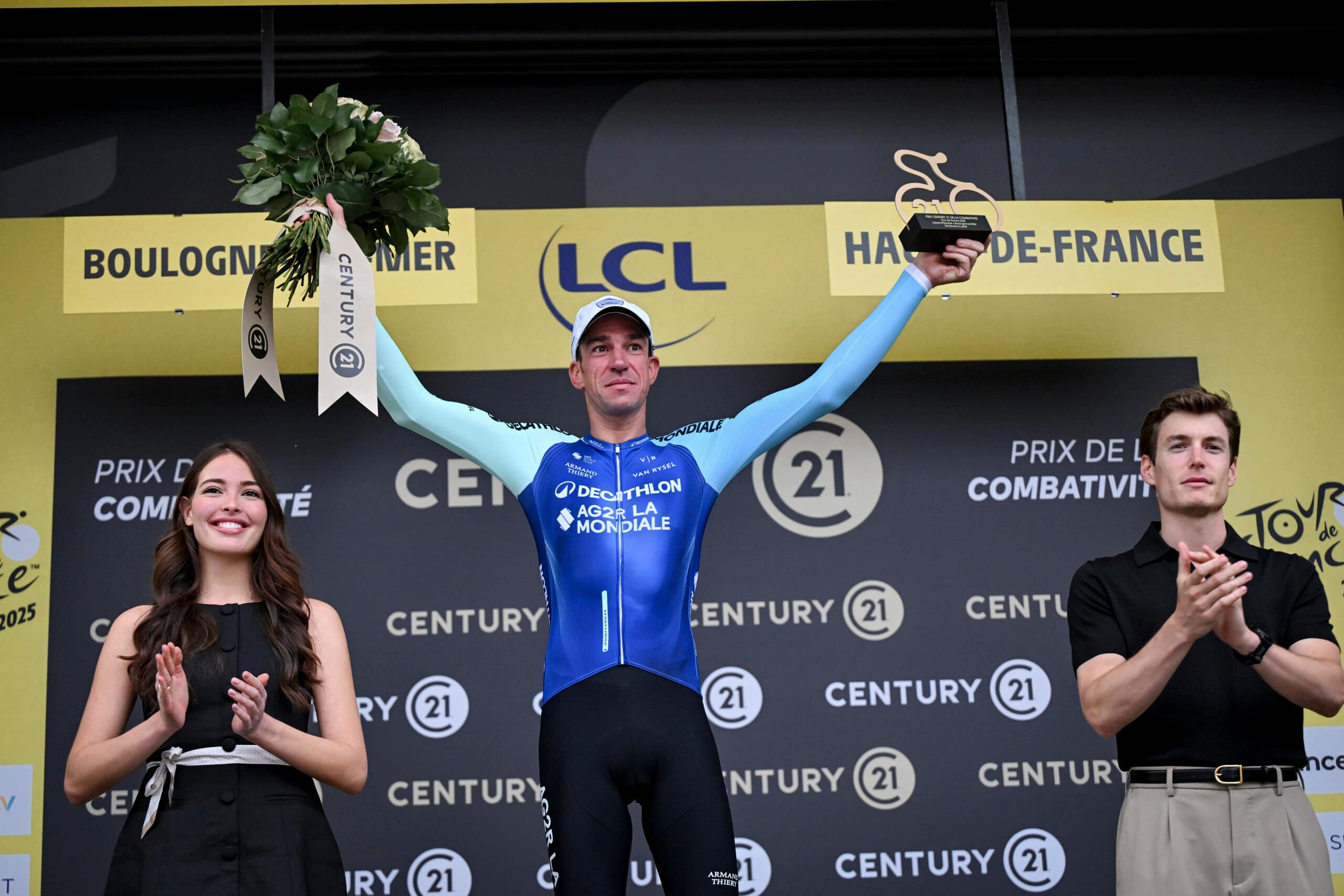 Aan de startlijn in Lauwin-Planque pronkten vier renners met hun nieuw verworven truien. Bini Girmay schitterde in het wit, Turgis in het groen en Philipsen in het geel. De bollen waren voor Benjamin Thomas, die na zijn sprint a deux en zijn val gewoon aan de start stond.
