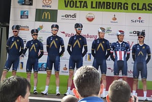 Enfin: het zal wennen worden, want afgelopen jaar waren de mannen van Q36.5 in een ander tenue goed te herkennen. Nu is het donkerblauw. En met alle sponsoren overal komt toch weer die handbal/ijshockey vibe terug. Wat vinden jullie?