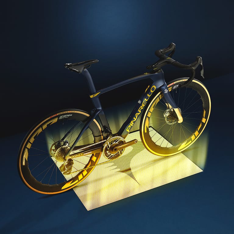 Gisteren was de lancering van de nieuwe outfit van het Pinarello Q36.5 Pro Cycling Team. Ja, Pinarello is echt naamgever, eerste in lijn ook nog eens. Zij lanceerde niet alleen de nieuwe kit, maar ook de nieuwe livery op de fietsen. Het is bepaald geen onopvallende keuze, met een prominente kleur goud/geel op zowel het shirt als ook de wielen en het frame.
