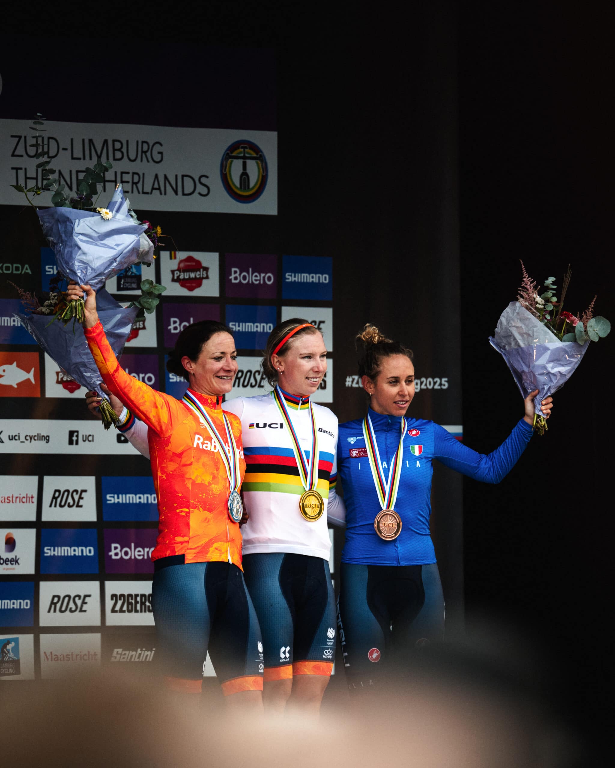 Nu was de laatste kilometer heel vuil omhoog lopend. Dus of ze het gehaald had, dat is de vraag, maar het vuile werk van Kastelijn, die uiteindelijk ook geen medaille pakte, was vreemd. Wiebes zei ‘bedankt he’ en sprintte uiteindelijk als een malle naar de winst. ‘Kramp tot achter mn oren’ zoals ze zelf zei. Vos pakte zilver en Persico (!) pakte het brons.