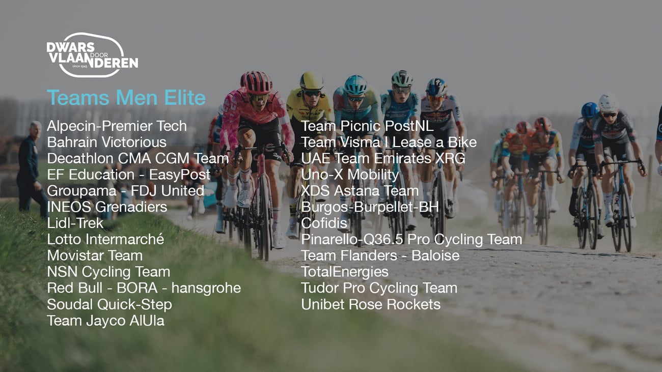 Een maand later, op woensdag 1 april, volgt met Dwars door Vlaanderen traditioneel een volgende belangrijke meetlat richting de Ronde van Vlaanderen. De mannen starten in Roeselare voor hun 80ste editie, de vrouwen vertrekken vanuit Waregem, waar opnieuw een uitgebreide fanzone wordt opgebouwd.