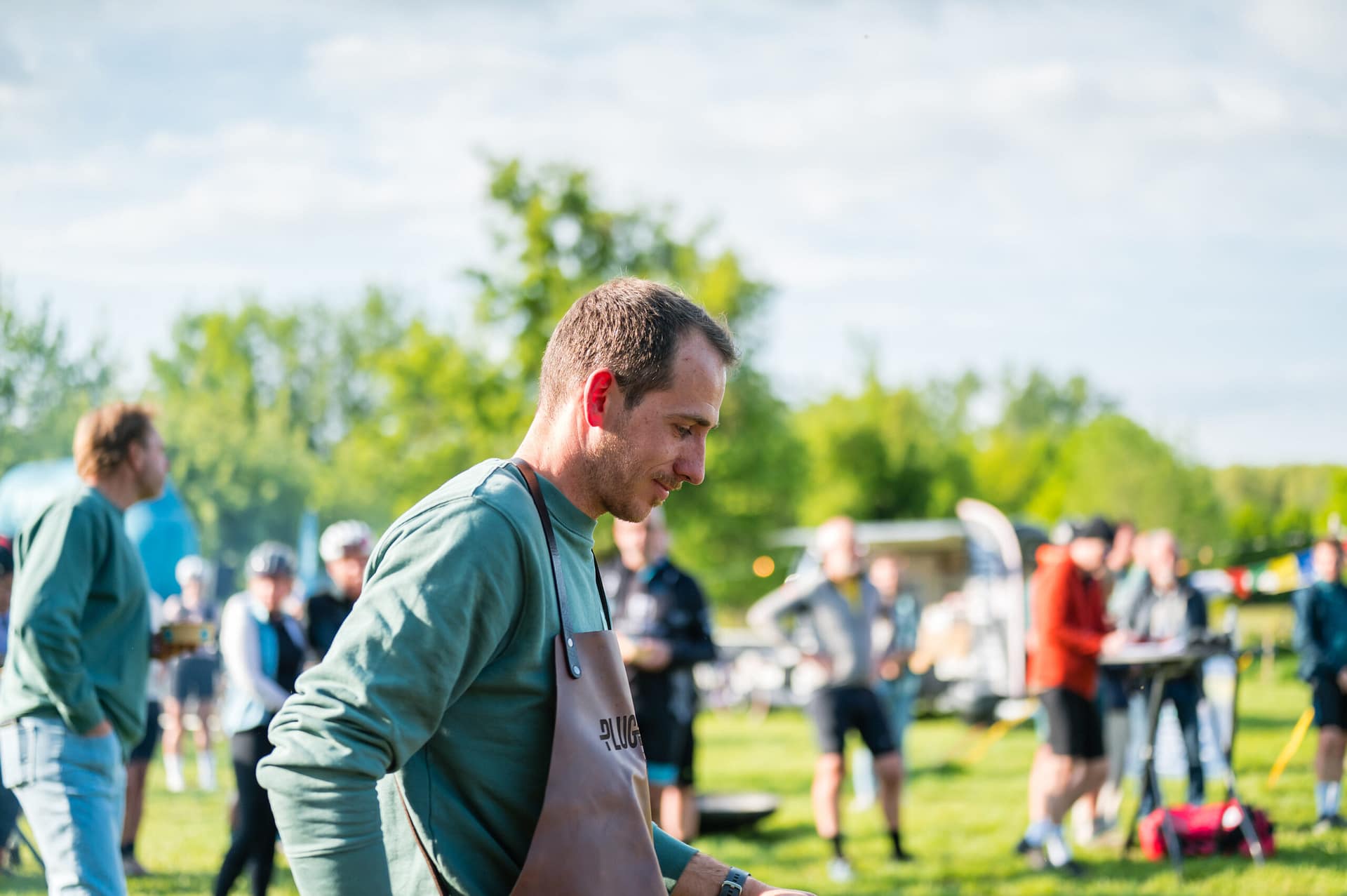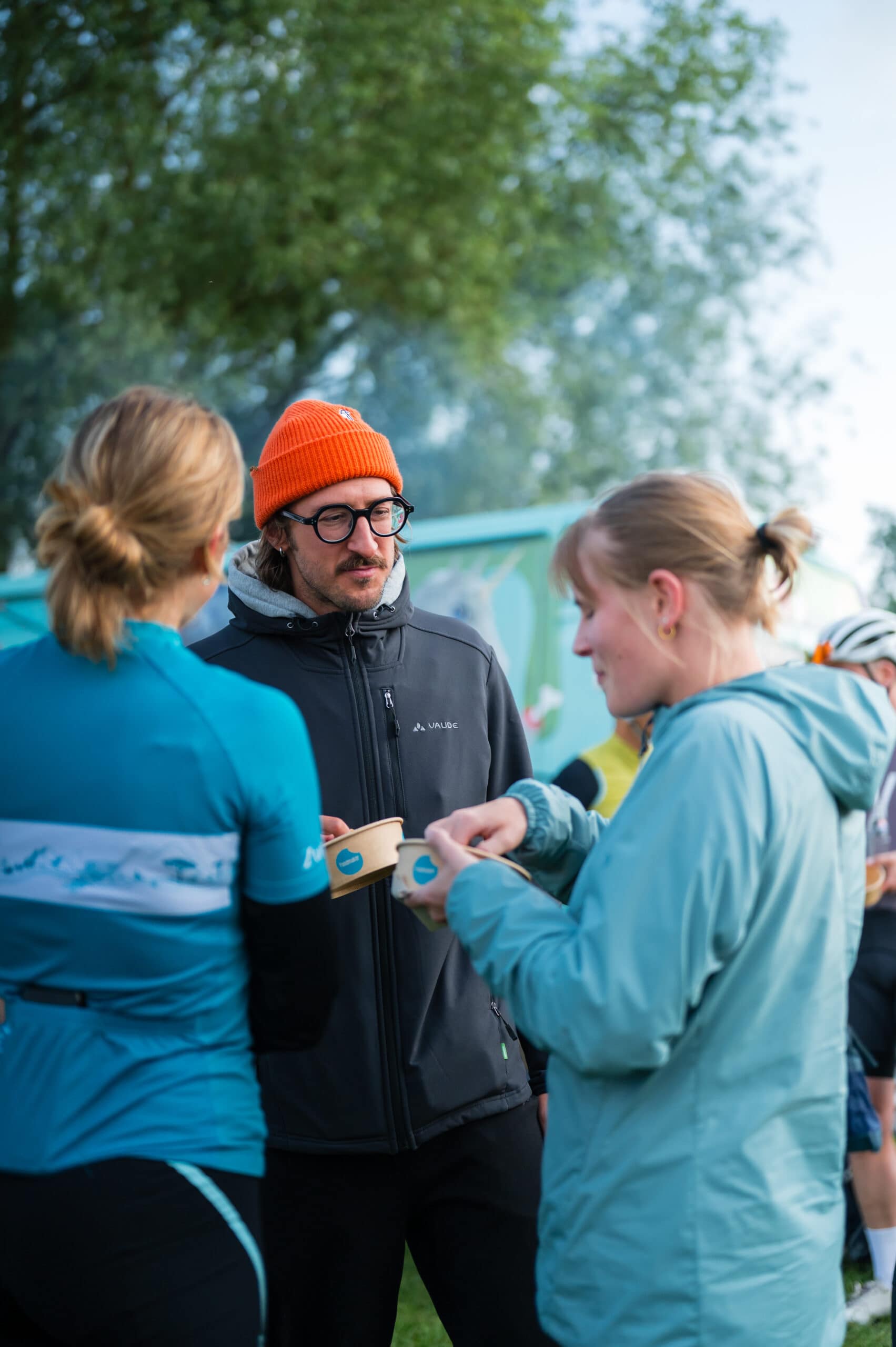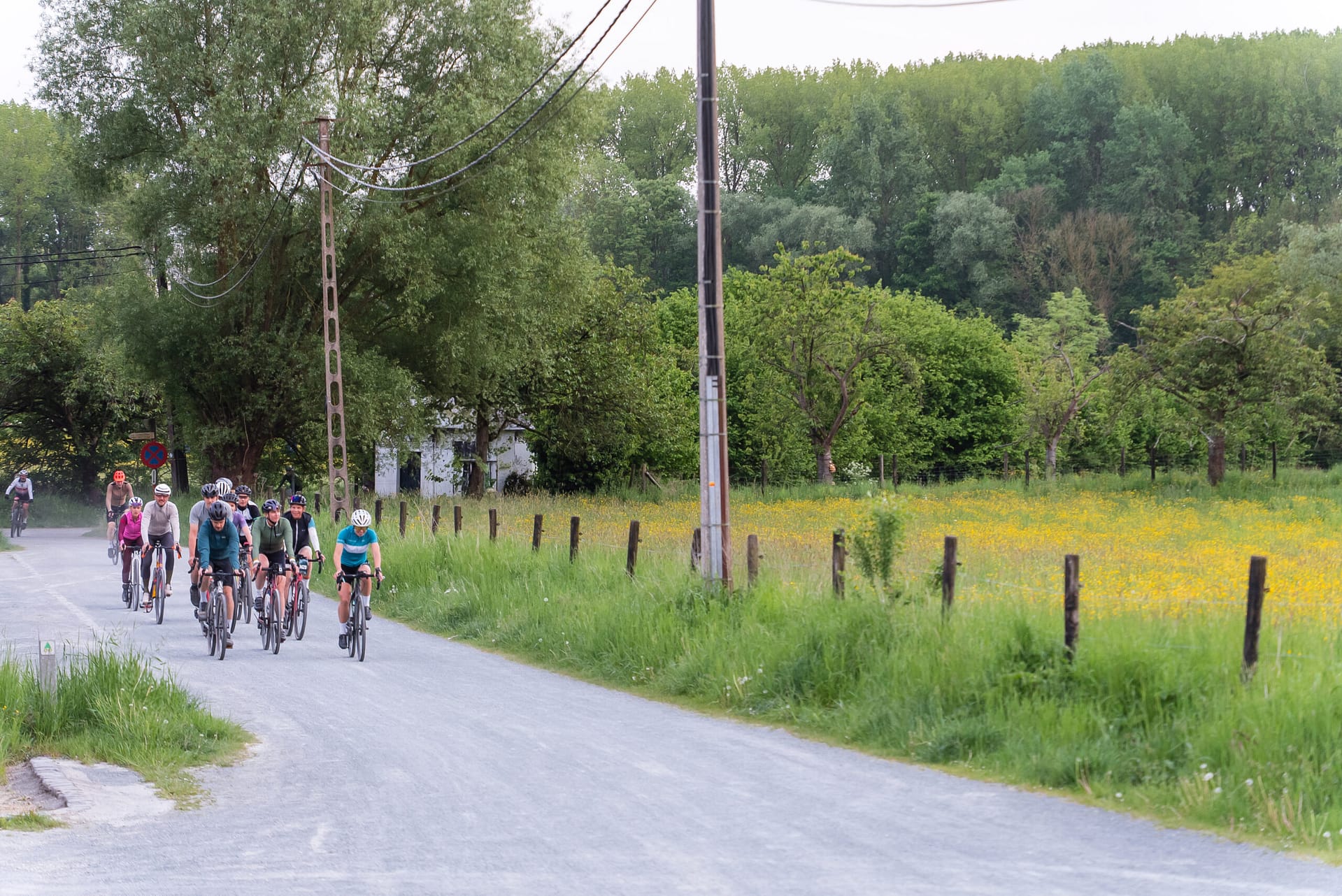 De lancering op 7 mei was er boenk op. Heel de sfeer zat juist: internationale hapjes die ze op den ofyr klaarmaakten, van die Tibetaanse vlaggetjes die flapperden in de wind, een Riksja photobooth waar ge u met een rare hoed kon laten fotograferen, en een heerlijke social gravelrit van 37 kilometer door ‘t prachtige Dijleland.