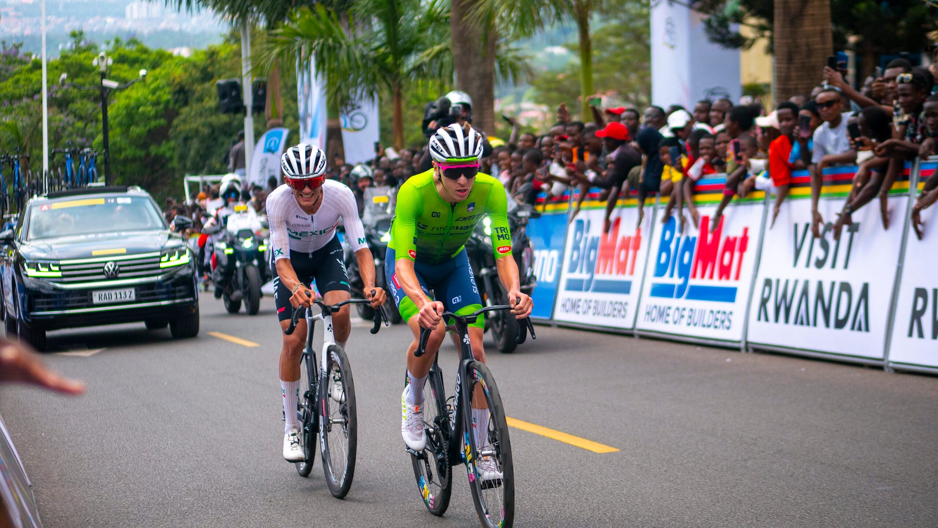 In de eerste serie lokale rondes bleef het peloton nog redelijk gesloten, hoewel er wel hard gereden werd. Zoals vooraf enigzins verwacht kwam de koers echt los in de ‘course extension’ met Mount Kigali en de iconische Muur van Kigali. Pogacar versnelde op de steile flanken en kreeg ploeggenoten Isaac Del Toro en Juan Ayuso mee. Het UAE-trio leek even een beslissende slag te slaan, maar op de Muur moest Ayuso al laten gaan en even later was het ook klaar voor Del Toro. Pogacar gaf in de persconferentie achter aan dat hij maagproblemen had. Pogi nam toch de koers in handen en demarreerde.