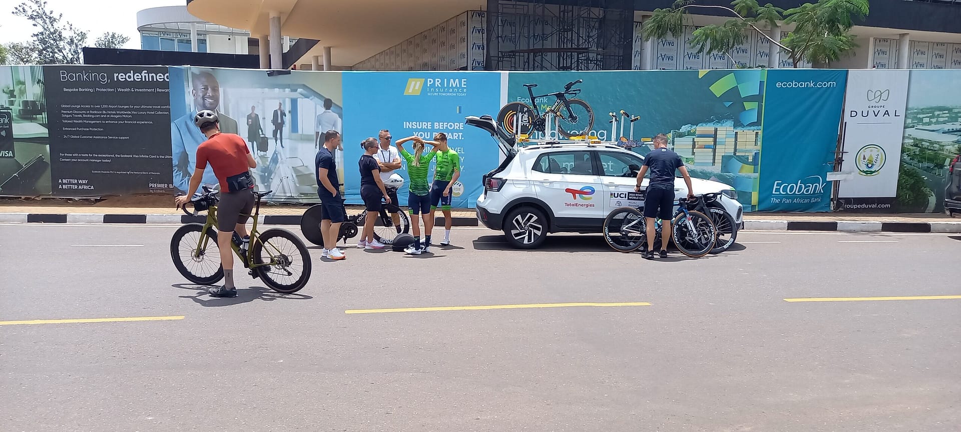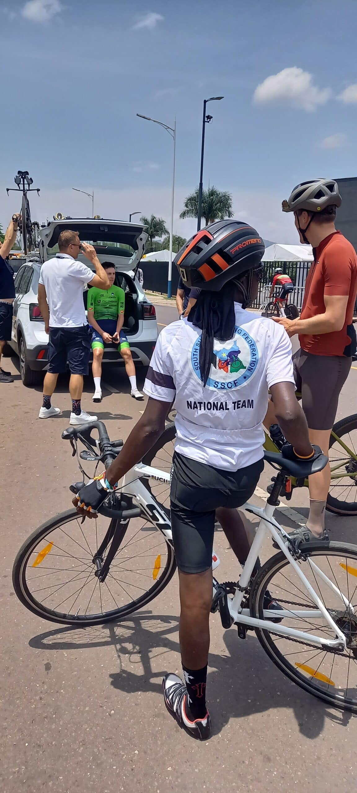 Ik sprak een renner aan die – net als ik – toekeek hoe Tadej Pogaçar zijn verkenning van het tijdritparcours afsloot. De Sloveen stond naast Urška en zijn begeleiders. Ik stond naast, wat ik dacht, een junior of hoogstens een U23-renner. Op zijn wielershirt stond Zuid-Soedan. Hij vertelde dat hij mee zou doen met de elite tijdrit. Hij bleek niet te liegen.