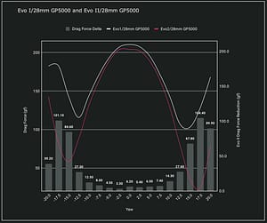 De conclusie: maximale efficiëntie rond een 28 mm band. De Evolution II krijgt daarom:
