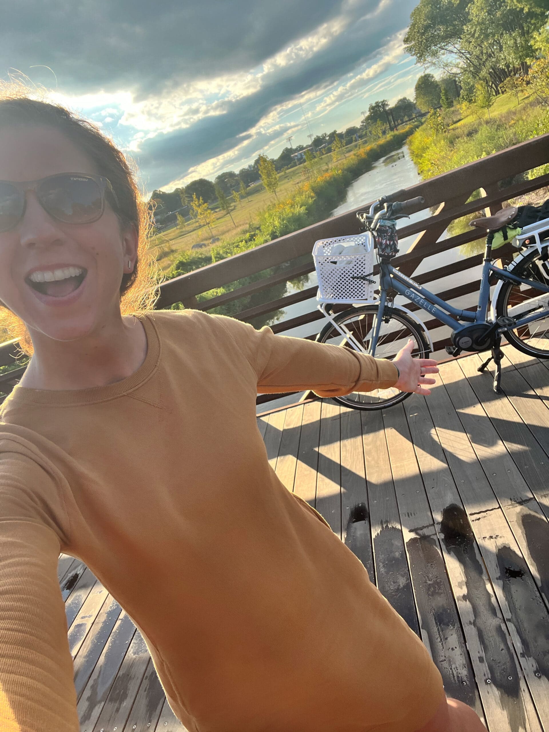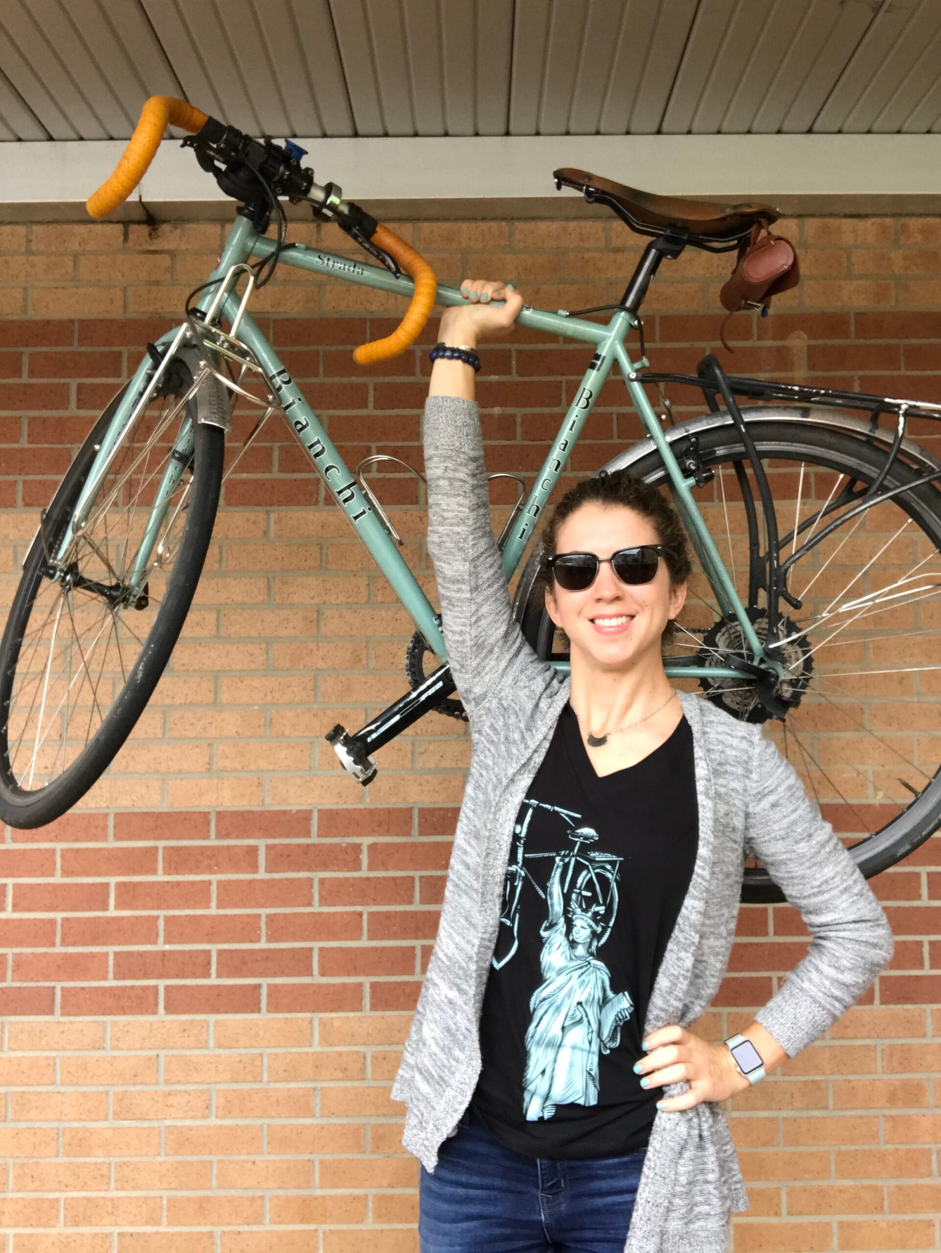 “Ik werd verliefd op fietsen door de stad toen ik in Wenen studeerde. Ik kocht een gebruikte fiets in de lente van 2010 en het was echt transformatief. Ik heb veel plaatsen in Europa bezocht, maar ben nog niet in Nederland geweest, deels omdat ik bang ben dat ik nooit meer weg zou willen! Ik geloof in het werken om mijn eigen gemeenschap beter te maken in plaats van gewoon ergens heen te verhuizen waar al een geweldige infrastructuur ligt. Hier kan ik werken om verandering te creëren, zodat mensen die niet het voorrecht hebben om gewoon naar een betere plek te gaan en te verhuizen ook kunnen profiteren. Het is bemoedigend om te zien dat veel lokale gesprekken zijn verschoven in de 10 jaar dat ik in deze stad woon, we staan open voor het experimenteren van nieuwe ideeën. Er zijn hier veel andere mensen die werken om huisvesting betaalbaar te maken, ons onderwijssysteem te verbeteren en vervuiling te verminderen – en ik voel dat toegang tot betaalbare, gezonde vervoersmethoden zo belangrijk is voor het werk dat anderen hier doen.”