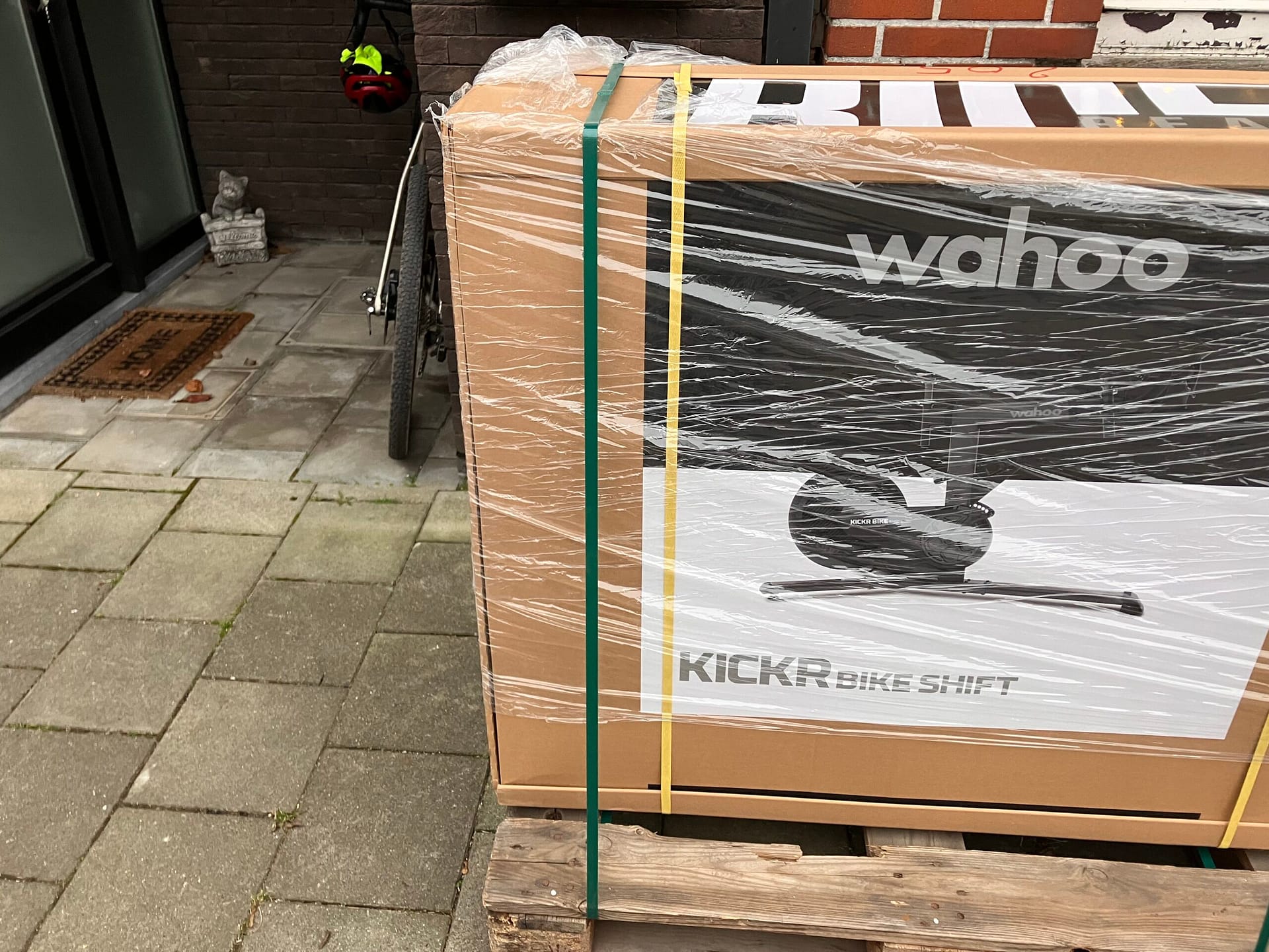 Het begon allemaal met de bevestiging van de verdeler dat de indoor trainer onderweg was. Ik kwam op een weekdag na een korte rit terug met de fiets, en zie al in de verte een vrachtwagen staan. Mijn vrouw stond molenwiekend aan de deur bezig dat er weer een pakje voor mij was. En ditmaal wat het een stevige pallet met een zware doos erop. Het begin van een mooi testavontuur!