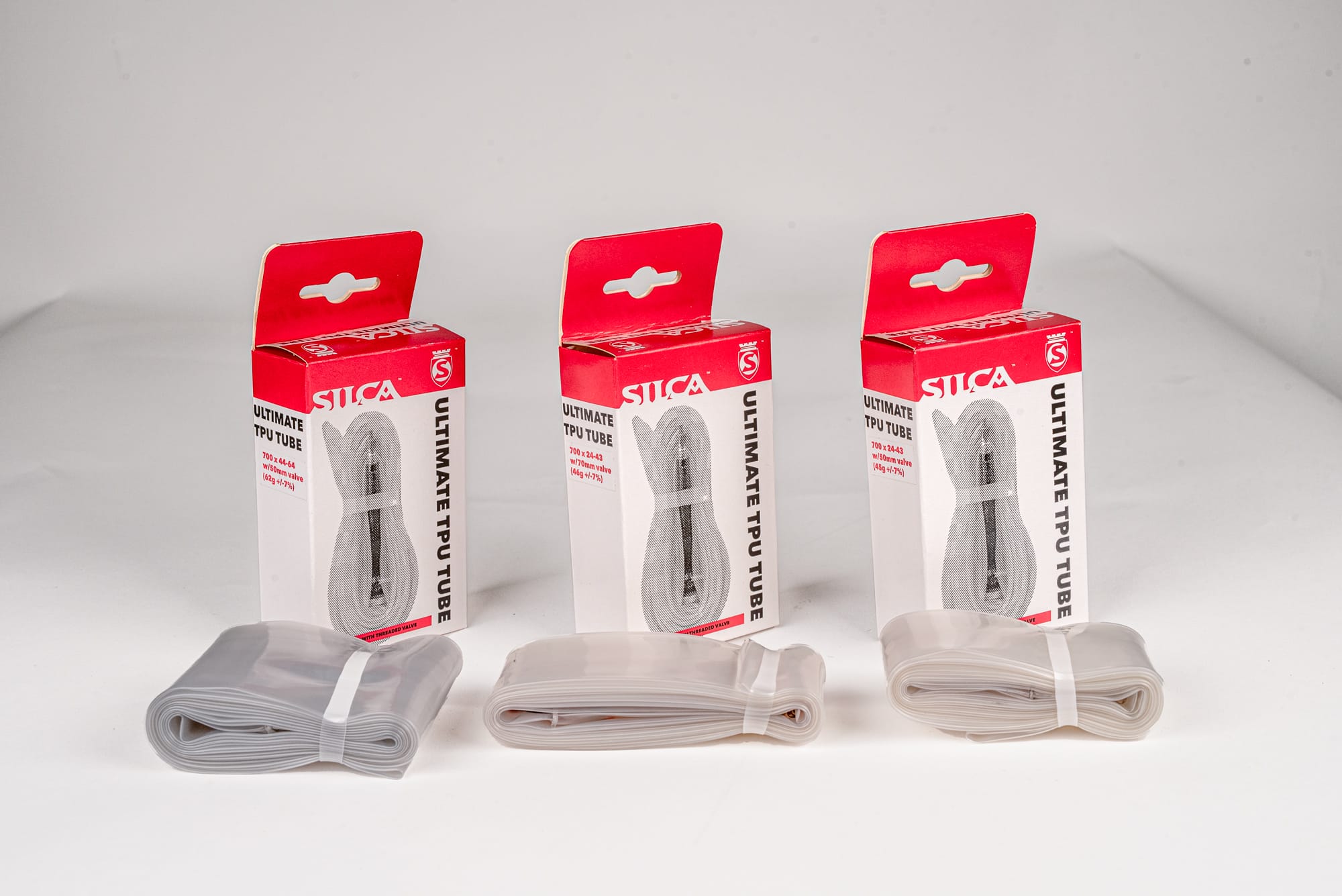 Voor degene die het niet weten, TPU staat voor Thermoplastic Polyurethane. Een sterk en licht materiaal waar dus al een tijd binnenbanden van gemaakt worden. Vaak maar ⅓ dan het gewicht en de maat van traditionele binnenbanden. Hierdoor worden ze vaak gebruikt door mensen die tubeless rijden. Maar de laatste jaren steeds meer door een breder publiek. Ze worden steeds verder verfijnd en Silca heeft dat nog verder doorgevoerd.
