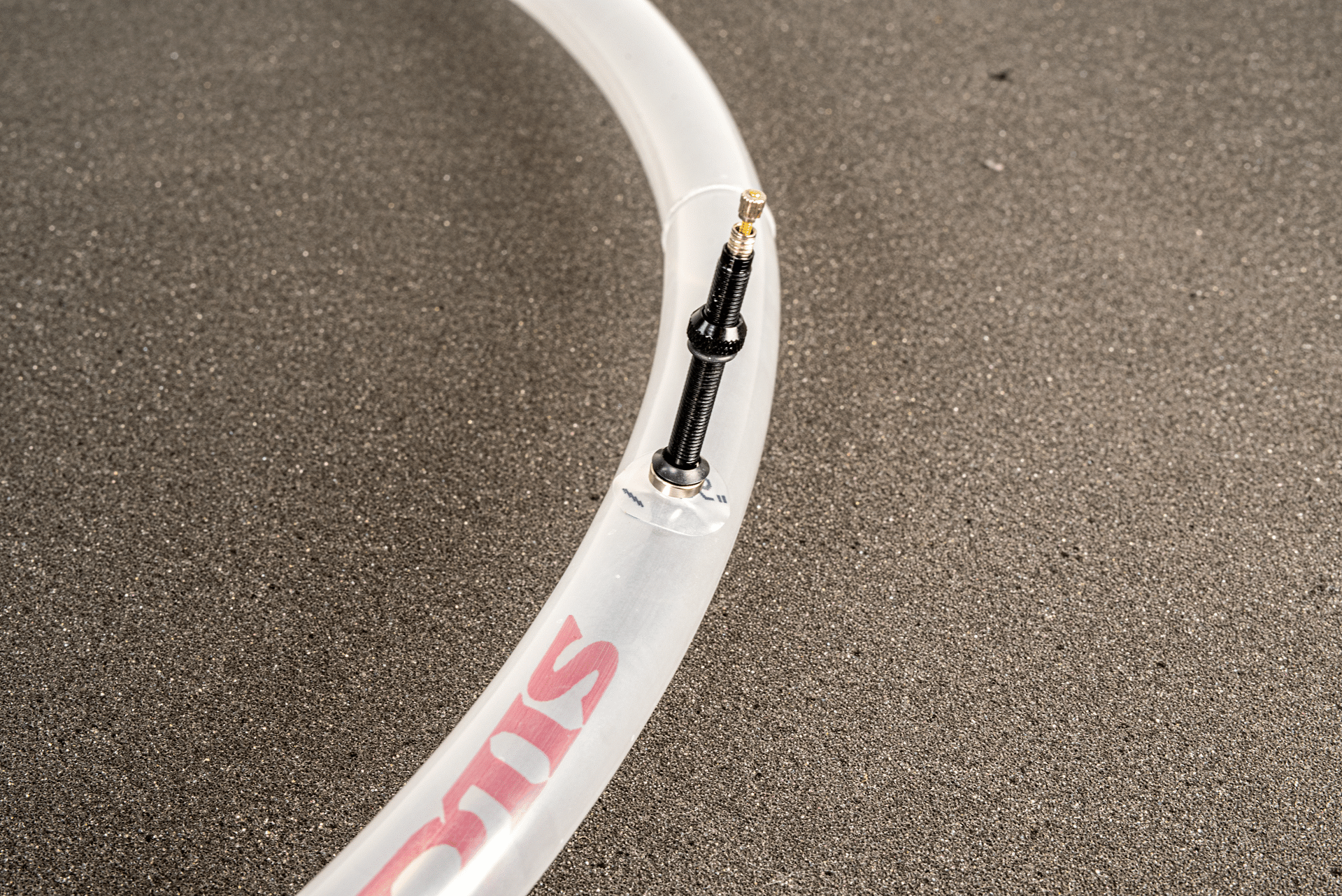 Ook heeft Silca het ventiel hiervoor volledig opnieuw opgebouwd. Deze is van aluminium, hetzelfde als normale banden, dus geen gedoe meer met plastic ventielen waar je pomp afglijdt. Maar dat was niet makkelijk om voor elkaar te krijgen. Want de connectie tussen het TPU en het ventiel heeft Silca specifiek hiervoor ontworpen.