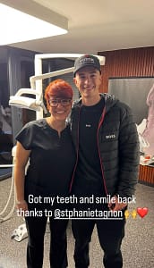 Het resultaat: gebroken tanden. “Er is een stuk van mijn tanden af en dat gaan we nu eerst regelen, maar gelukkig is de vrouw van onze verzorger tandarts,” zei Pluimers. Op zaterdagavond zat hij in een geïmproviseerde behandelstoel in plaats van aan de feesttafel.
