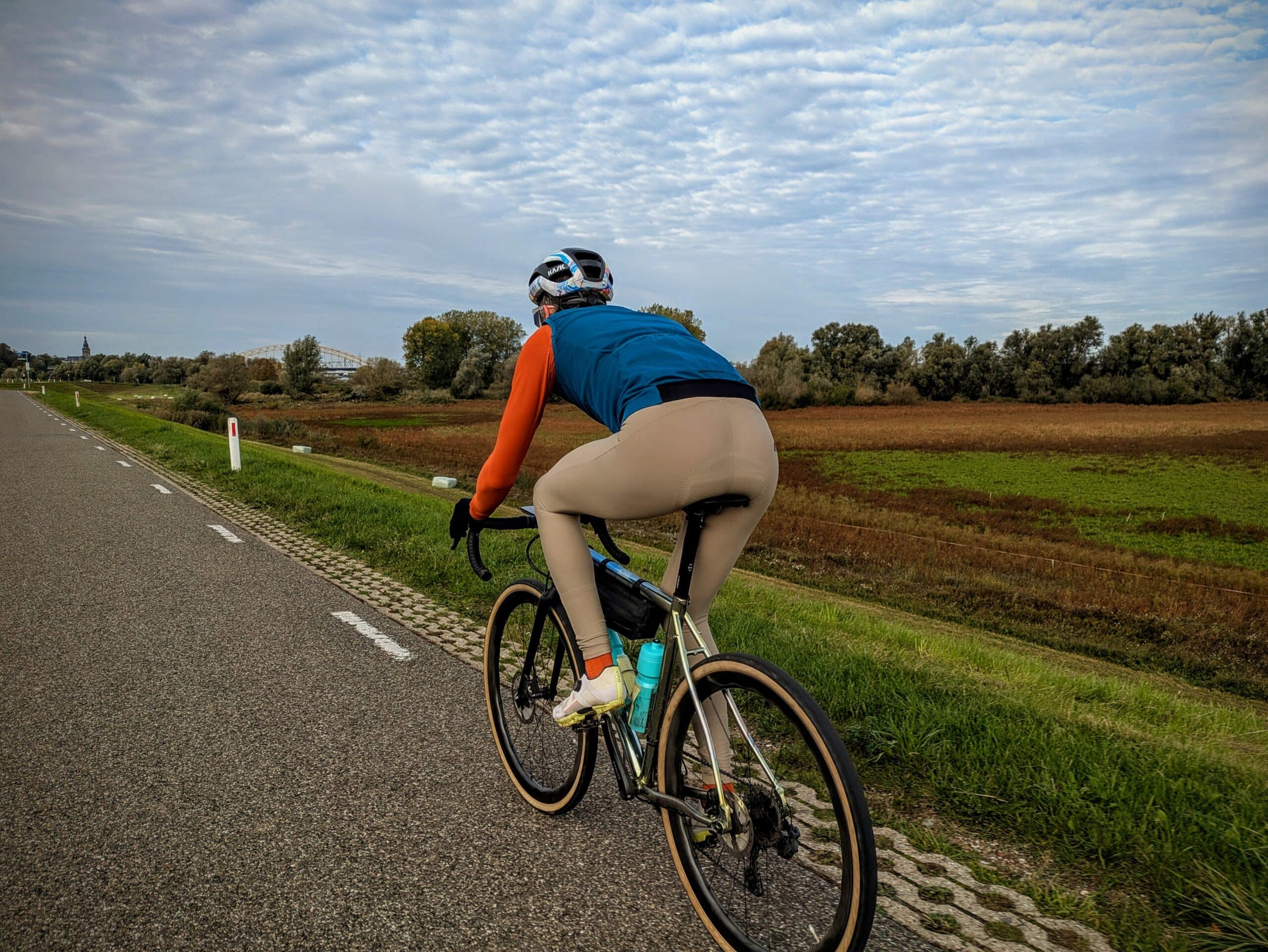 T: Jazeker. De pasvorm is wel minder aero, maar zeker wel strak. Geen “gravel” of “comfort” fit. Maar er kan nog steeds een ondershirt onder. Dan kan je makkelijk met lagere temperaturen rijden. Ook vooral omdat het redelijk doorwaait, het is zeker niet winddicht. Maar voert dus wel echt lekker vocht af. En met een dun winddicht jack er over kan je dit als fijne midlayer gebruiken.