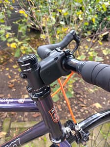 In de zomer heb ik daarom eerst mijn fiets opgeknapt. De roestplekken zijn aangepakt. Helaas was de originele lakkleur nergens te krijgen. Dus ben ik voor de kintsugi look gegaan. Alhoewel dit in Japan vooral toegepast wordt op servies, vond ik het voor deze fiets ook passend. In de Japanse schoonheidsleer dragen de sporen van breuk en herstel bij aan de schoonheid van een voorwerp. Dat is waar kintsugi over gaat en daarom zijn er overal oranje kenmerken op de fiets verschenen. Maar goed dit artikel gaat niet over kintsugi, maar over een stuurpen. Na de kintsugi actie, heb ik nieuwe spatborden gekocht en mijn tailfin rek gemonteerd. Als laatste heb ik een bullhorn gemonteerd met TT-remgrepen. Het is een bijzondere fiets geworden.