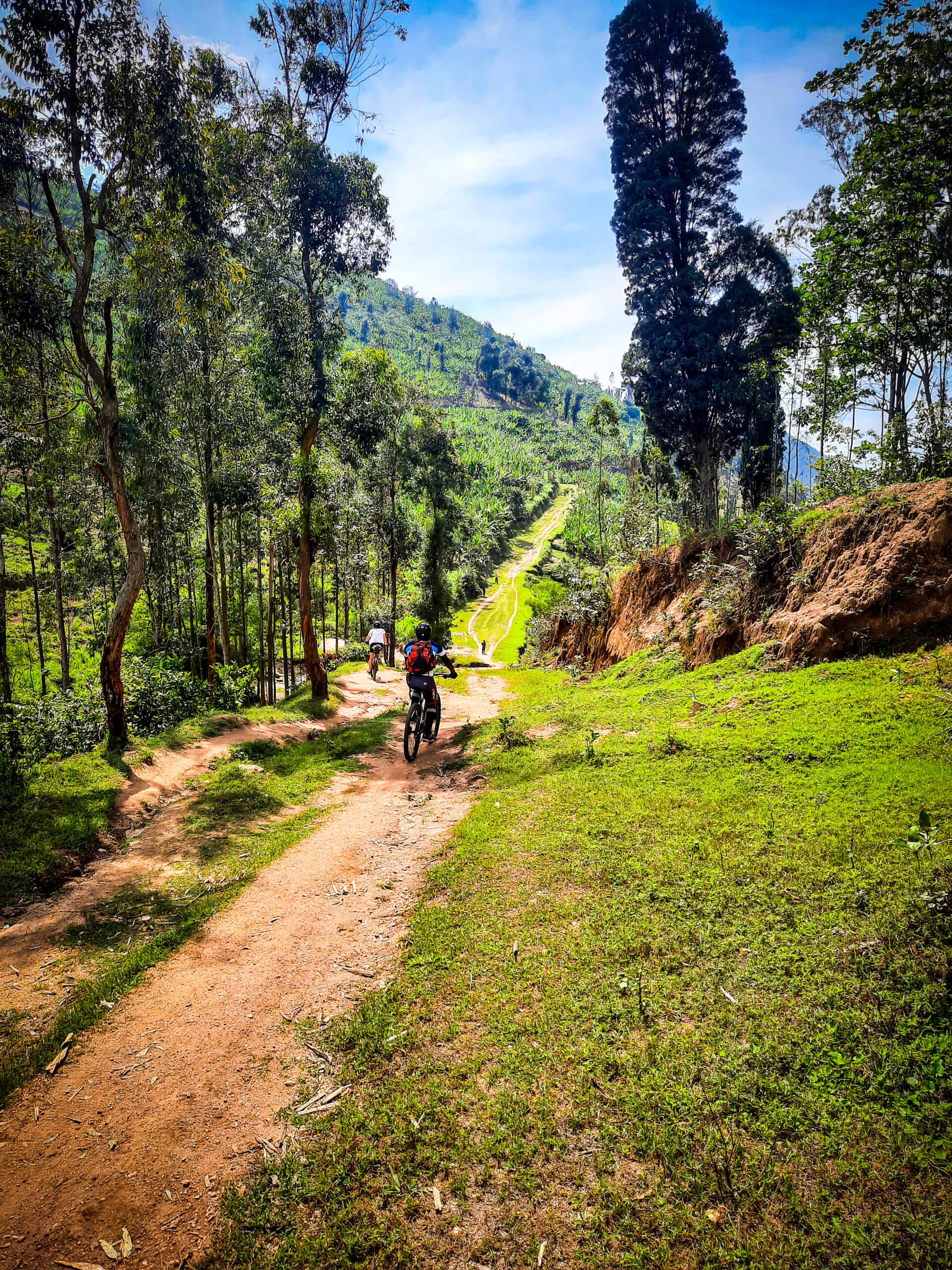 De trail is dus vernoemd naar de waterscheiding van Congo en Nijl: aan de ene kant stroomt het water naar de Congo, aan de andere kant naar de Nijl. Hij slingert over zo’n 227 km langs (en soms dwars door) de Western Province van Rwanda, van Gisenyi (tegen Goma aan) tot Rusizi. Volgens Bruno is het er schitterend: “Onderweg scheer je langs terrassen, thee- en koffieplantages, door dorpjes waar kinderen zwaaien en boeren hun lading avocado’s en bananen over je hoofd balanceren.” Het zijn de foto’s die de lokale regering niet per se meer wilt laten zien, maar het is wel de realiteit. Rwanda is een land in ontwikkeling, waar je enerzijds nieuwe technologie en initiatieven ziet, maar anderzijds ook de stereotypen van (zuidelijk) Afrika kunt tegen komen.