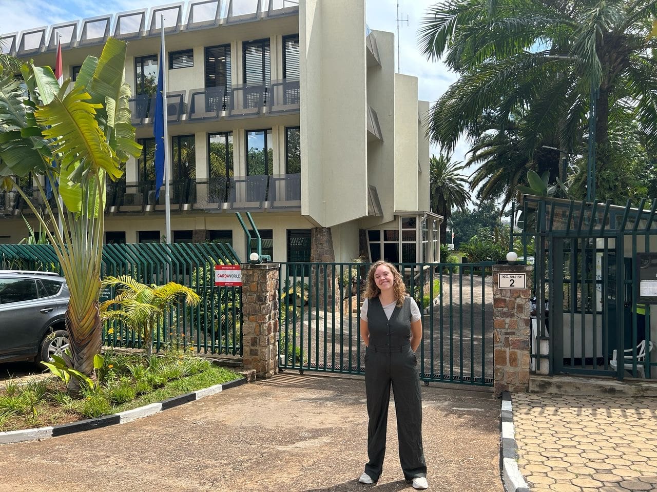 Sanne Scheltinga is het afgelopen jaar afgestudeerd in ‘Security and Crisis Management’, en heeft een half jaar stage gelopen op de Nederlandse ambassade in Kigali. Ze heeft daar onder andere geholpen met de voorbereidingen op de ambassade voor het WK. Voordat ze naar Rwanda vertrok, heeft ze ook een half jaar stage gelopen bij de Rijksdienst voor Ondernemend Nederland (RVO), bij het communicatieteam voor Internationale Samenwerking.