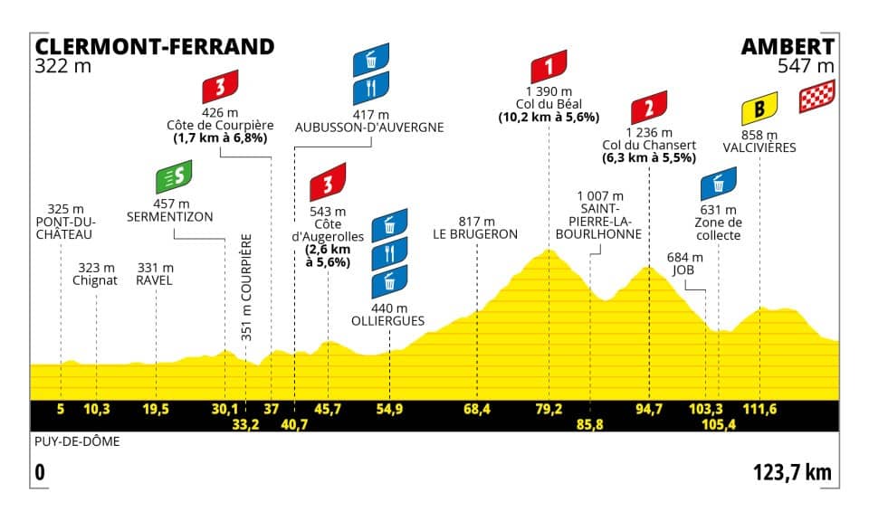 Etappe 6? Dan is het tijd voor het Centraal-Massief met als hoogtepunt de Col de Béal. Een onbekende klim, die slechts 1 maal in de Tour als klim te zien was. Bij de mannen reden Pogacar en co in 2020 over die bewuste col. Toen nog met ene Primoz Roglic in het geel. Maar dat was ook de opmaat voor die ene dag op Superplanche des Belles Filles. Enfin. Die gaan we dit jaar niet zien, zowel bij de mannen als de vrouwen niet.
