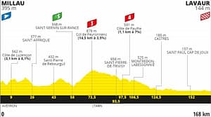 Na de voorbije dagen is het afwachten wie vandaag het initiatief gaat nemen. Zijn ploeg wil oplettend koersen maar met de afwezigheid van de gele trui in een rit waar andere ploegen ook hun pijlers op hebben gezet zouden ze niet onnodig gaan koersen. Dat blijkt ook niet nodig. Er is vandaag 1 ploeg die duidelijk plannen heeft. Bora. Op papier zou je vandaag niet direct als uitgelezen kans aanstippen om de sprinters ervan langs te geven. Twee beklimmingen van de derde categorie en eentje van de 4de die dan ook nog op 70km van de finish ligt. Maar het routeprofiel laat zien dat er naast die twee beklimmingen van de 3e categorie nog 3 venijnige ongecategoriseerde beklimmingen in de opening zitten en dat de laatste 3de categorie beklimming er wel eentje van 14,5km á 3,9% is. Lang en continu oplopend. En dus Bora. Want aangezien hij zelf helaas niet mee zal strijden om het groen begon de strijd om deze trui zo langzamerhand wel los te barsten. Sagan wilde op zijn Sagan’s de trui pakken door in precies dit soort etappes te laten zien dat hij de beste klimmer is van alle spurters. En dus komt er geen ontsnapping op gang, maar vormde er zich bijzonder snel een bus. Een bus waarin de plaatsen snel gevuld worden met bijna alle rappe mannen uit deze tour. De Tussensprint ligt na 58 km aan de voet van die lange klim van de 3de categorie. Bij het aanrijden hiervan blijkt de beoogde coup van Bora al geslaagd. Alles wat meedoet om de groene trui is eraf gefietst en hij ziet hoe de oud cyclocrosser, Matteo Trentin, roet in het eten gooit door de maximale punten voor Sagan weg te snoepen. Dit komt hem op een kleine vermaning van Peto te staan, hetgeen Trentin wijselijk negeert. Je hoeft niemand iets te gunnen en als jij een tussensprint wilt rijden dan doe je dat, al helemaal als je Matteo Trentin heet.