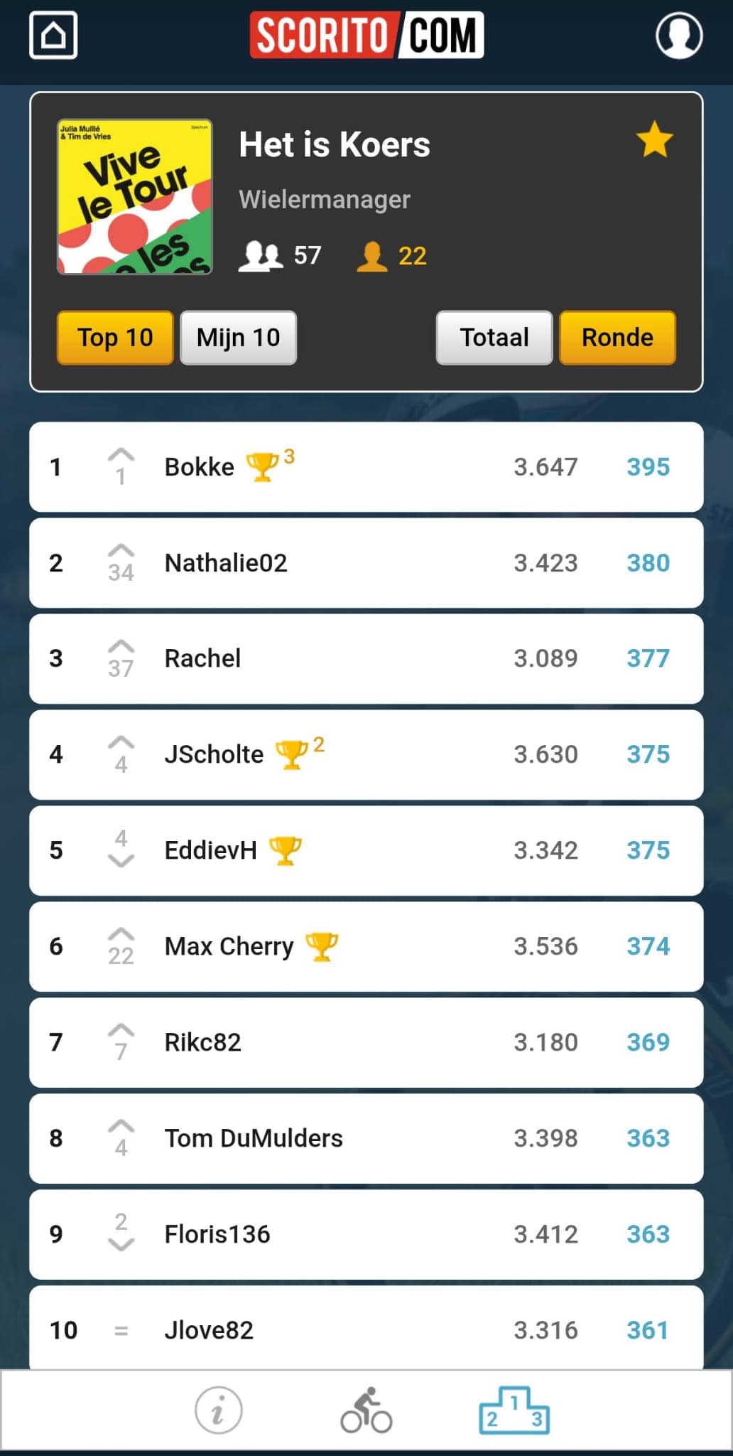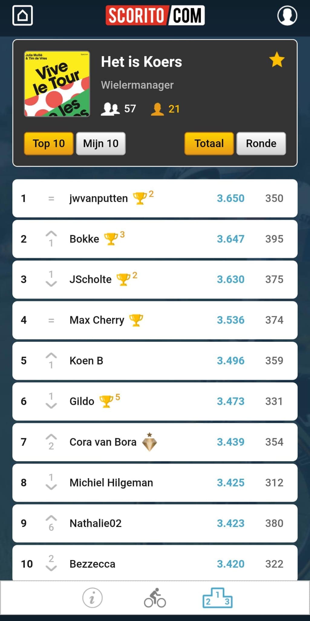 Na gisteren was het natuurlijk nauwelijks nog een verrassing te noemen, maar ook de in strijd tegen de klok was Tadej Pogacar weer oppermachtig. Tenzij zijn lange voorseizoen hem nog gaat opbreken, lijkt het niemand meer spannend te gaan worden. Dat kan niet gezegd worden over onze Tourpool. Daar is het ongemeend spannend en nadert dagwinnaar Bokke klassementsleider jwvanputten op drie punten!