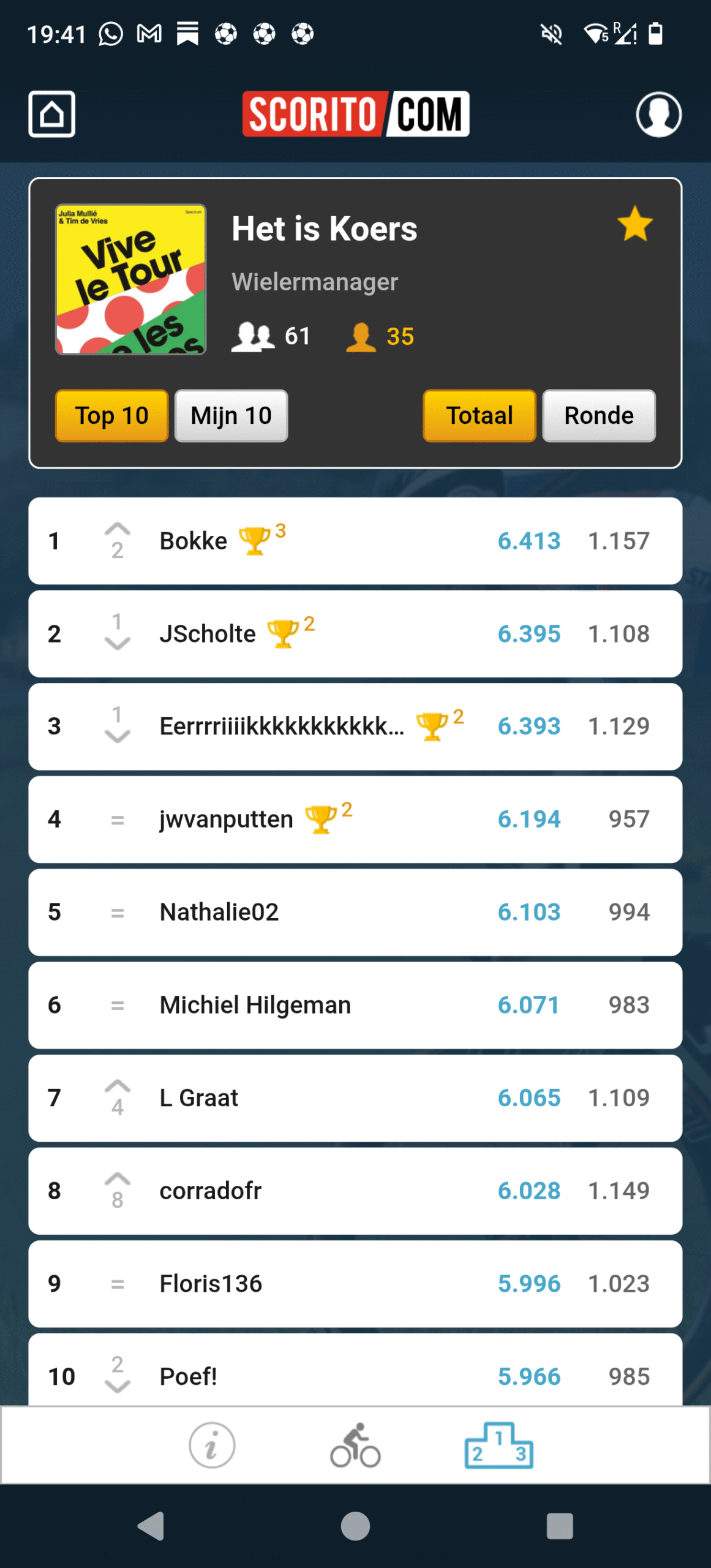 Er was een hoop te doen over de door hevige regenval spekglad geworden finale op Montmartre. Of de neutralisatie van de laatste vijftig kilometer nog gevolgen heeft gehad op het eindklassement van onze subleague, zal misschien voer voor een Andere Tijden Sport vormen over twintig jaar, maar na alle vijven en zessen moge duidelijk zijn dat Bokke na een sterke Giro nu eindwinnaar is geworden van onze Tourpool. Alle ogen zullen in de Vuelta a España ook op hem gericht zijn.