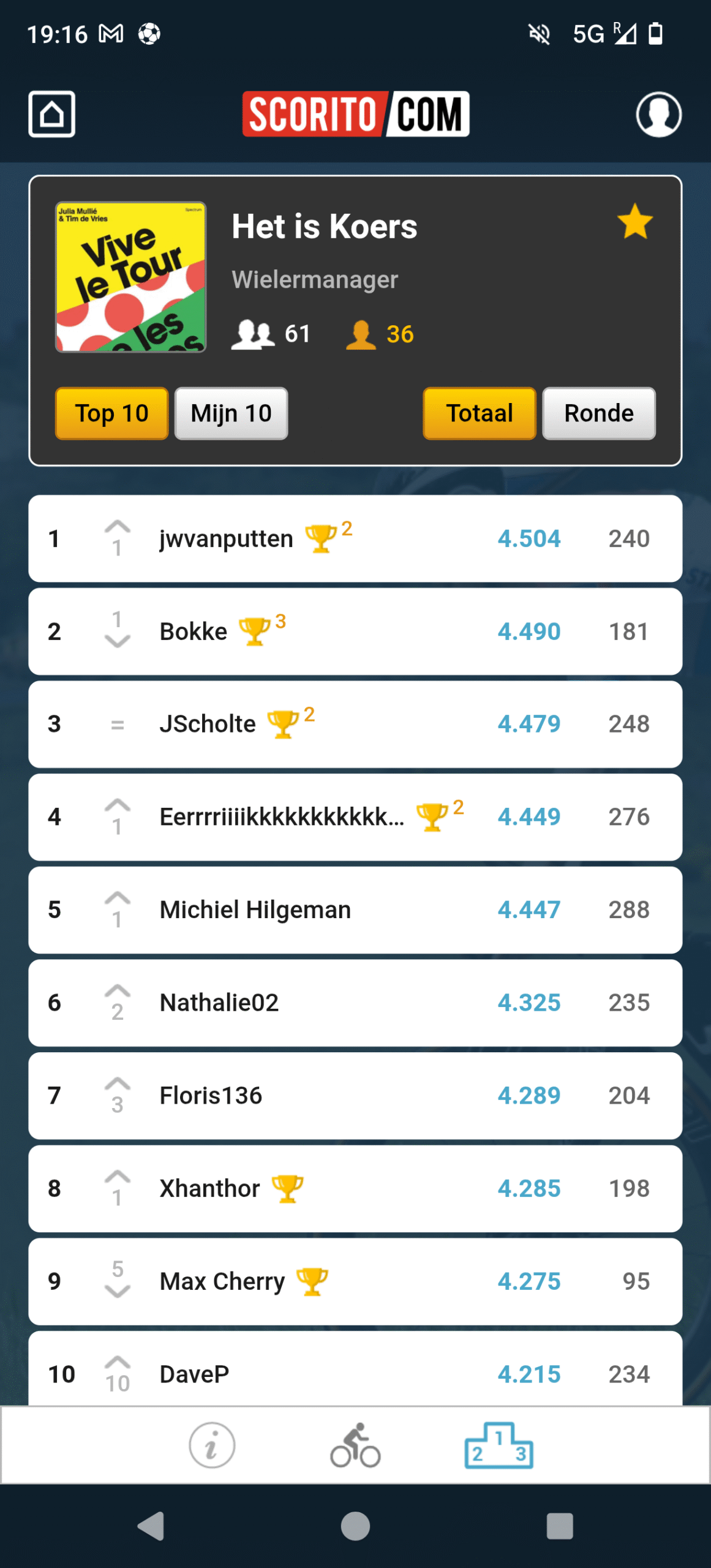 Dat Bokke het niet van zijn rappe mannen moet hebben, ontdekten we al eerder in onze subleague. Deze nachts wisseling met jwvanputten is dus misschien ingecalculeerd, maar zal desalniettemin zo vlak voor Parijs pijn doen. In de zwaardere etappes die volgen zal hij weer het verschil moeten maken.