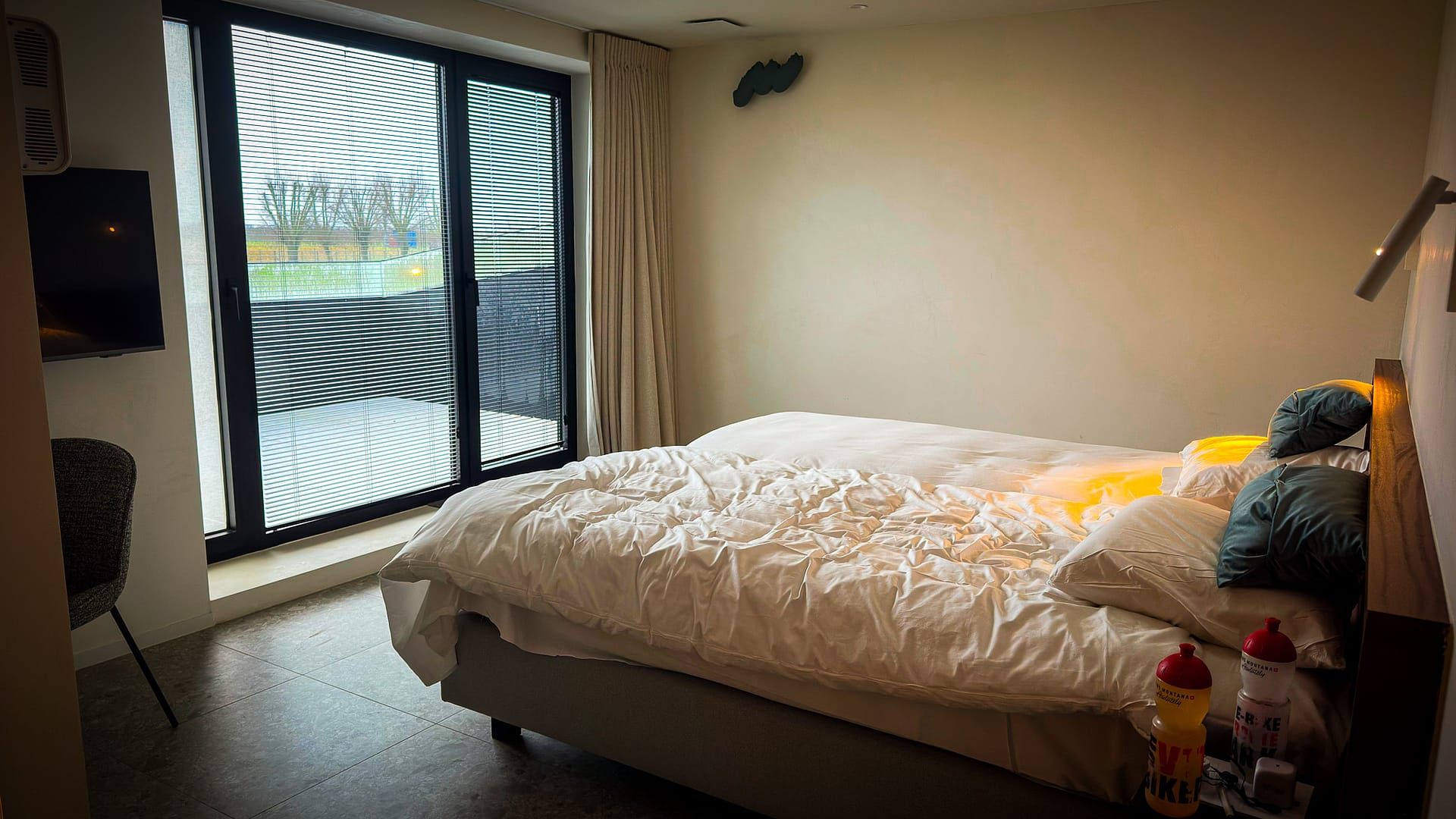 We knipperen even met onze ogen als ons ontbijt wordt geserveerd. In Monte Marcella, het hoogteverblijf in West-Vlaanderen, is dat niet per se gewoon. Deze locatie is ingericht op topsporters, die niet afhankelijk willen zijn van de keuken van een hotel. Voor ons journalisten wordt een uitzondering gemaakt. We zijn met z’n tweeën en op de doos staat netjes ‘Welkom Thomas en Sander, geniet ervan!’. De gebaksdoos bevat allerlei soorten lekkere (pudding)broodjes, bolletjes, zoet en hartig beleg, een eitje en een sapje. Met de koffie uit de goede automaat worden we meer dan verwend.