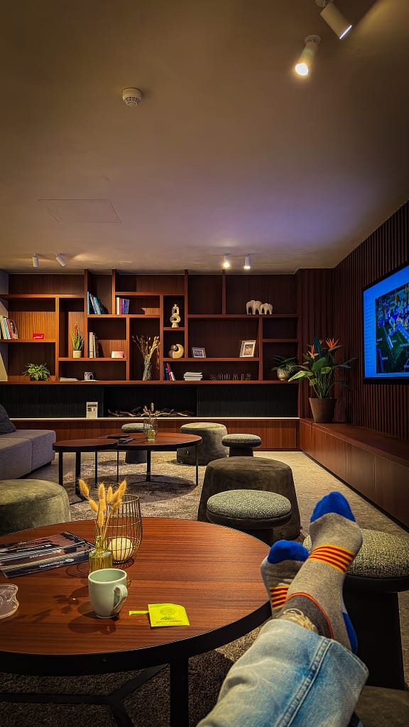 Als wij de bioscoop zien, die ingesteld is op 2000m hoogte, dan snappen we wel waarom dit ook populair is bij sporters zoals Team Iko, van de schaatsers met Nederlandse toppers als Joy Beune en Dai Dai Ntab. In een omgeving als deze ga je graag op hoogtestage, er is niets van de spartaanse soberheid die vaak geassocieerd wordt met leven op 2000 meter hoogte in de bergen.