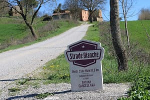 De renners rijden over de Senese klei, ofwel de Crete Senesi, ten zuiden van Siena. De grijze klei wordt mattaione genoemd, het is afzetting van de zee die er in het Plioceen lag. Ergens op de route ligt een boerderij. Voor wielerliefhebbers een van de bekendste boerderijen in Italië, want hij ligt aan een gravelweg die ieder jaar volop wordt gefotografeerd. De kronkelende weg ligt in een klein dal tussen twee heuvels in. Het is een zijstraatje van de Strada Provinciale 71 naar Lucignano d’Asso. Vanaf de heuvel waarop dat dorpje ligt kun je het peloton in de verte zien aankomen. Aan de horizon bovenop de andere heuvel staan een villa en een eenzame boom. Achter de renners en de volgkaravaan zie je het stof opwaaien.